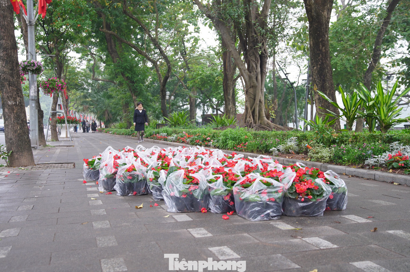 Hồ Hoàn Kiếm như được khoác trên mình lớp áo mới bằng hoa rực rỡ