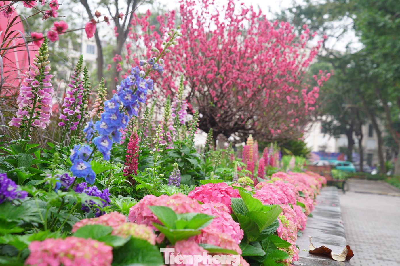 Cẩm tú cầu, hoa đào khoe sắc bên bờ hồ Hoàn Kiếm