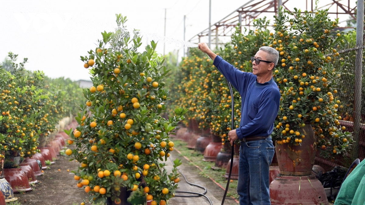 Theo chia sẻ của ông Bùi Tăng Viêm – một chủ vườn quất ở Tứ Liên, sau đợt bão lũ, thời tiết giai đoạn cuối năm 2025 khá thuận lợi, giúp quất chín đều, quả sai, màu sắc đẹp và ít sâu bệnh. Các cây quất đạt đủ các yếu tố được thị trường ưa chuộng gồm hoa, lộc non, quả xanh và quả chín vàng…