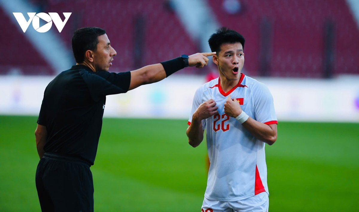 Bởi trọng tài biên cho rằng Quốc Việt trong thế tư thế việt vị có tham gia vào tình huống bóng...