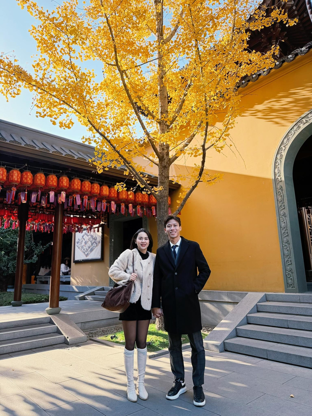 Trung vệ Quế Ngọc Hải và bà xã Dương Thùy Phương đang tận hưởng chuyến du lịch lãng mạn tại thành phố Thượng Hải (Trung Quốc), thu hút sự chú ý của đông đảo người hâm mộ. (Ảnh: IGNV)