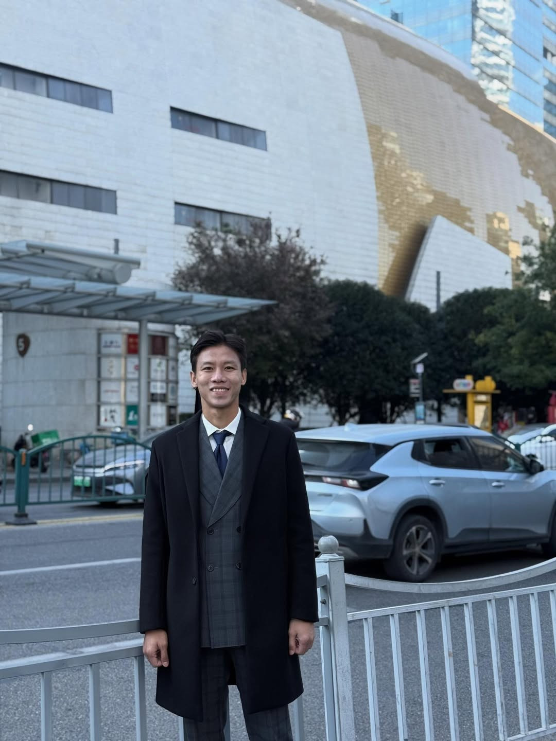 Trong chuyến đi này, Quế Ngọc Hải không còn là đội trưởng bản lĩnh trên sân cỏ mà hóa thân thành một "tài tử" lịch lãm, điển trai khi diện những bộ vest, áo khoác dạ ấm áp. (Ảnh: IGNV)