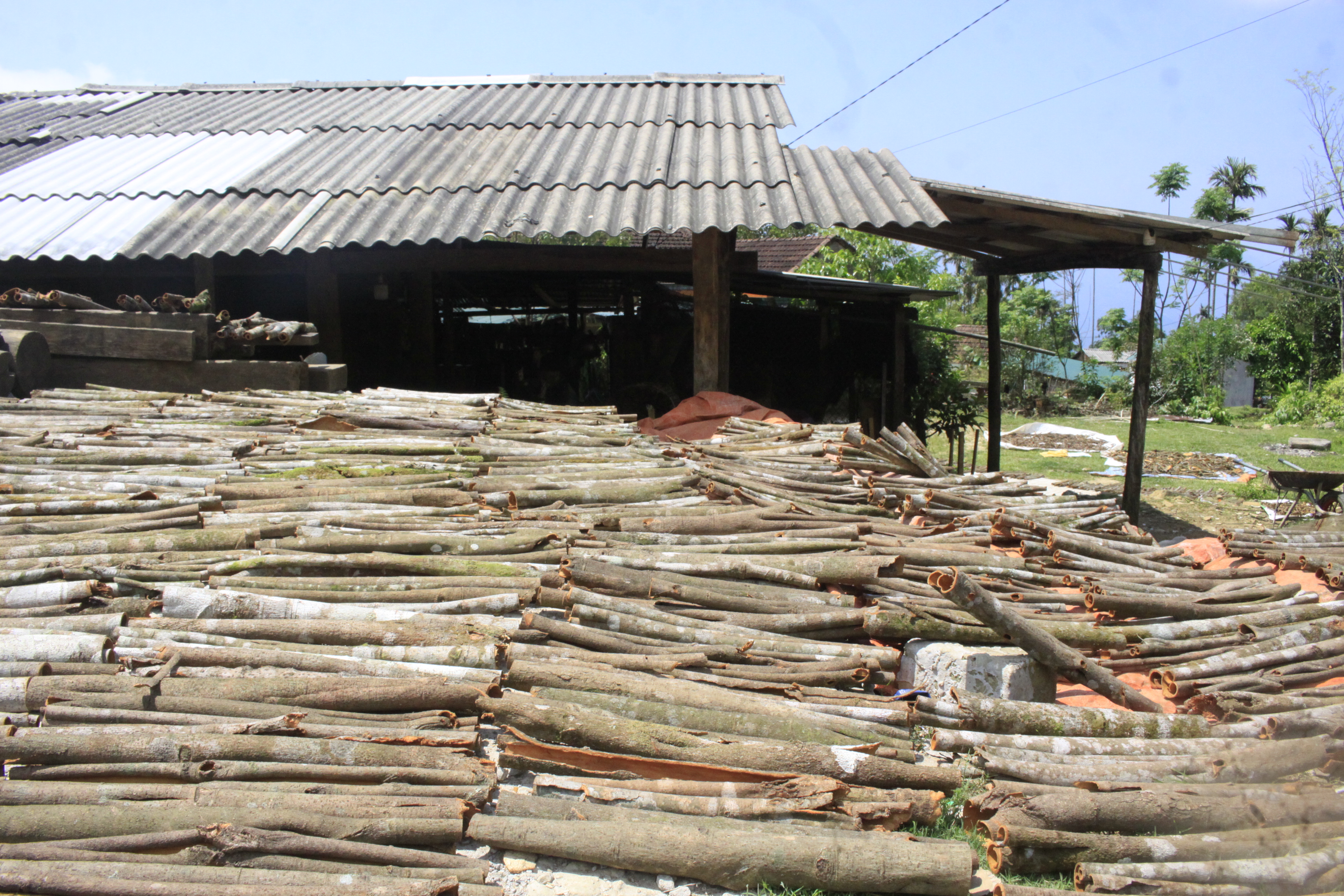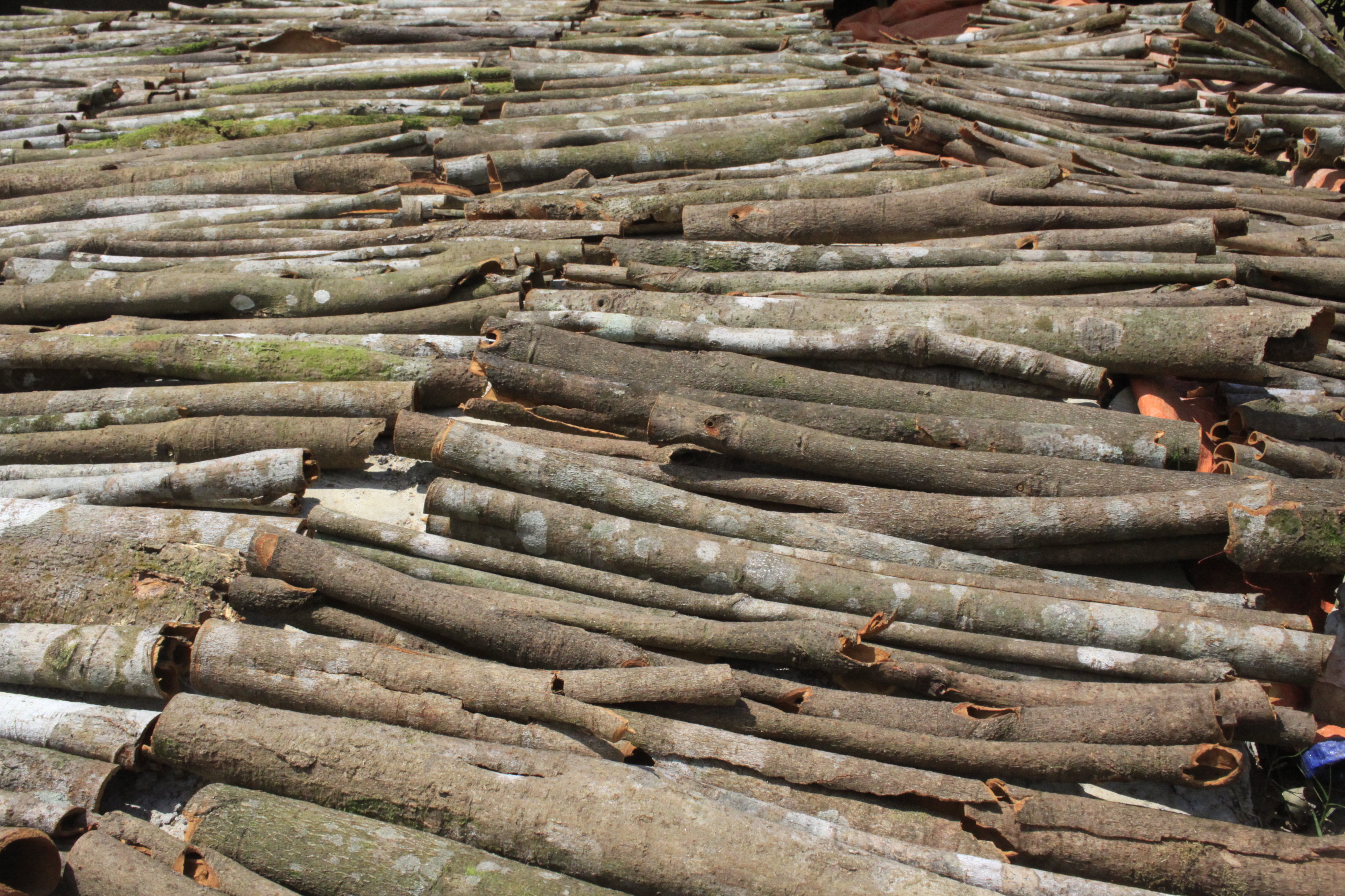 Quế được phơi khô sau khi khai thác. Ảnh: NGUYỄN TRANG