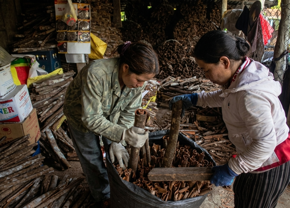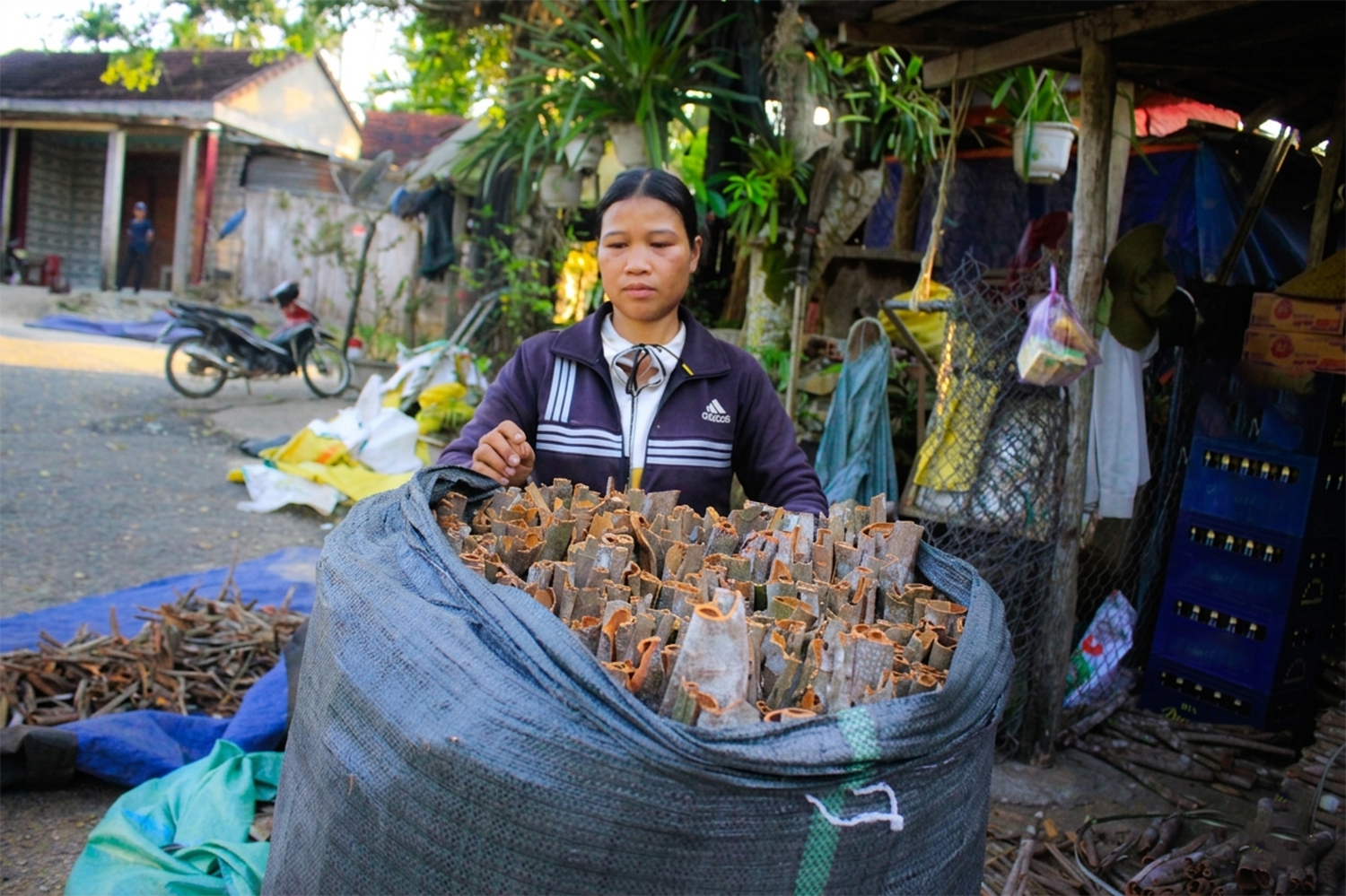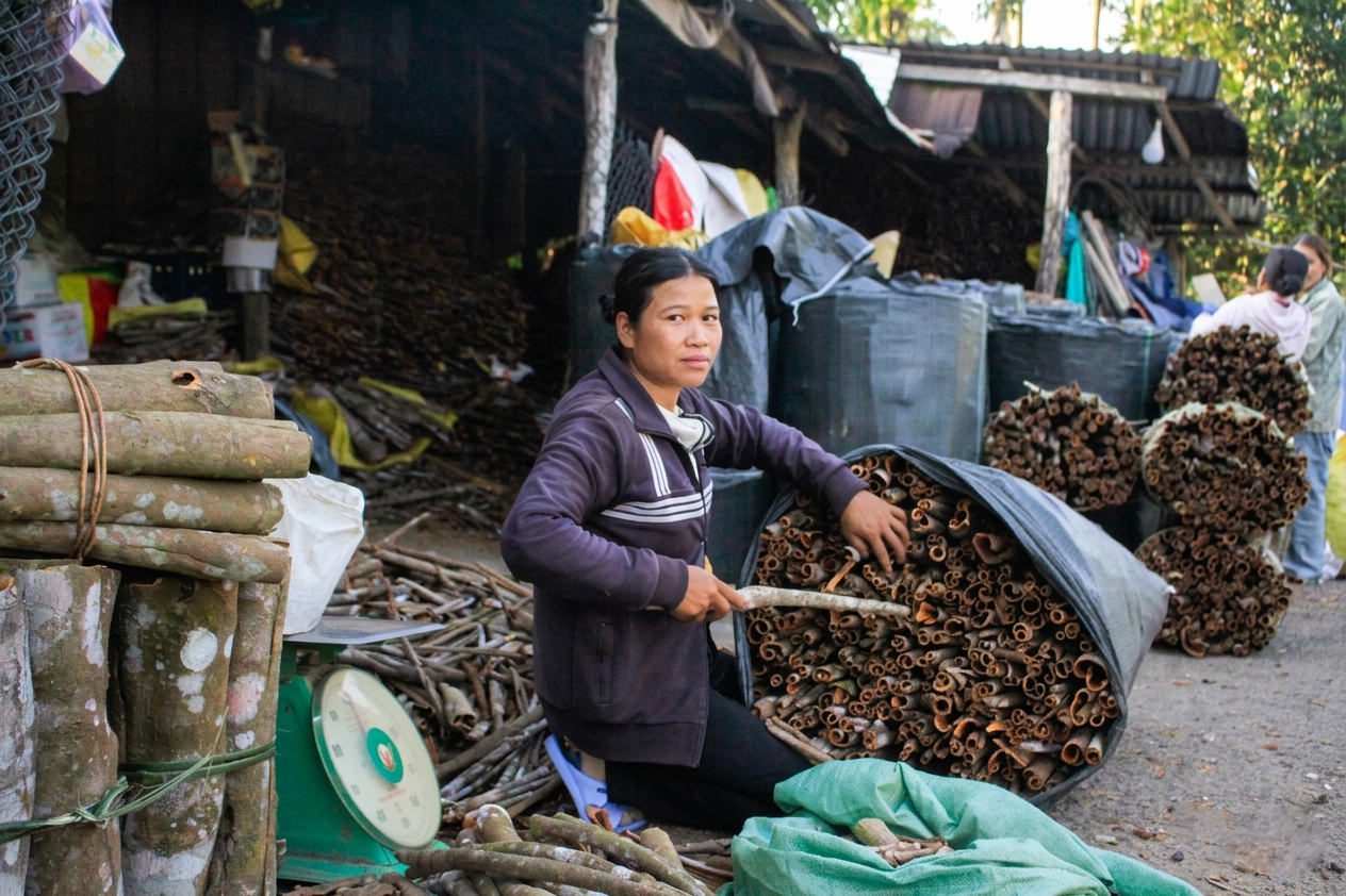 Quế sau khi khai thác được chở đến các vựa để bán cho thương lái. Ảnh: NGUYỄN TRANG