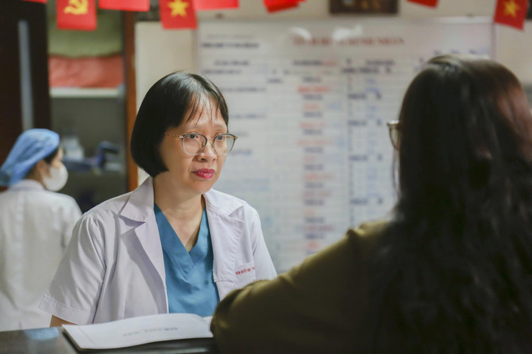 Bác sĩ chuyên khoa II Võ Thị Thanh Bình, Trưởng khoa Ghép tế bào gốc, Viện Huyết học-Truyền máu Trung ương tư vấn cho người bệnh.