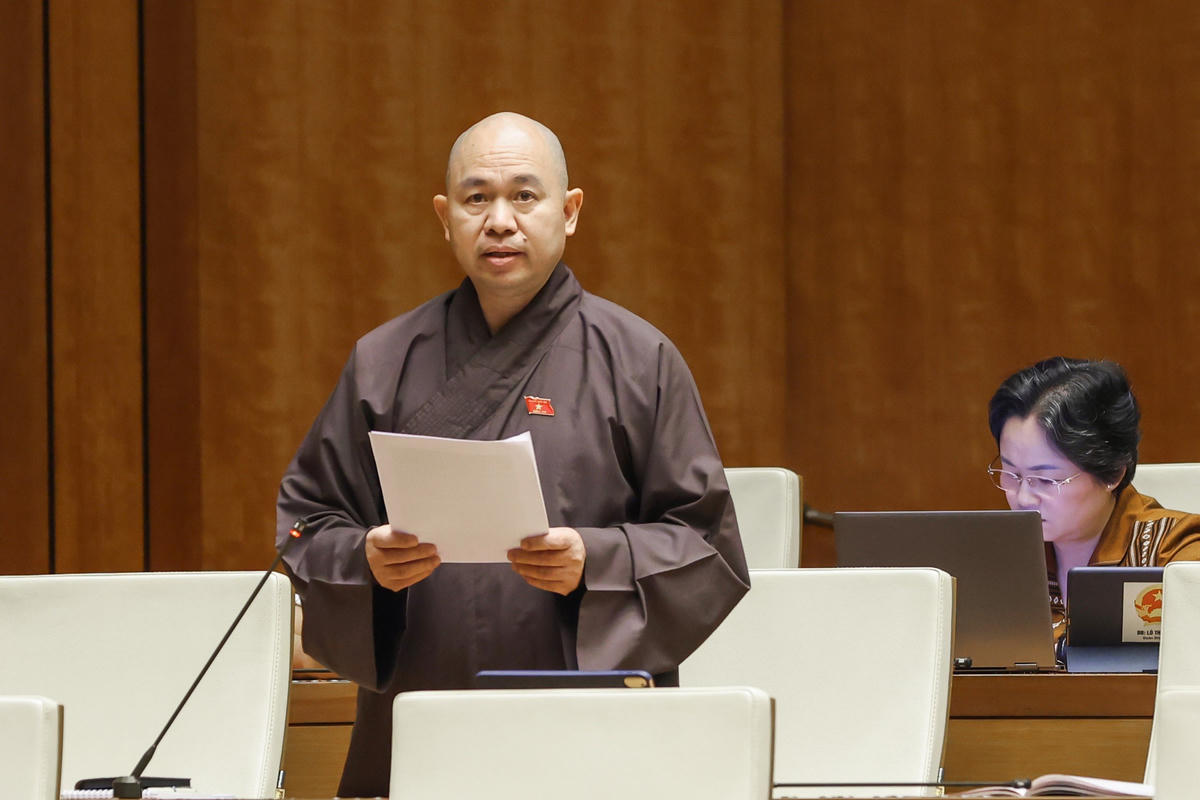 Đại biểu Thích Đức Thiện, đoàn Điện Biên phát biểu