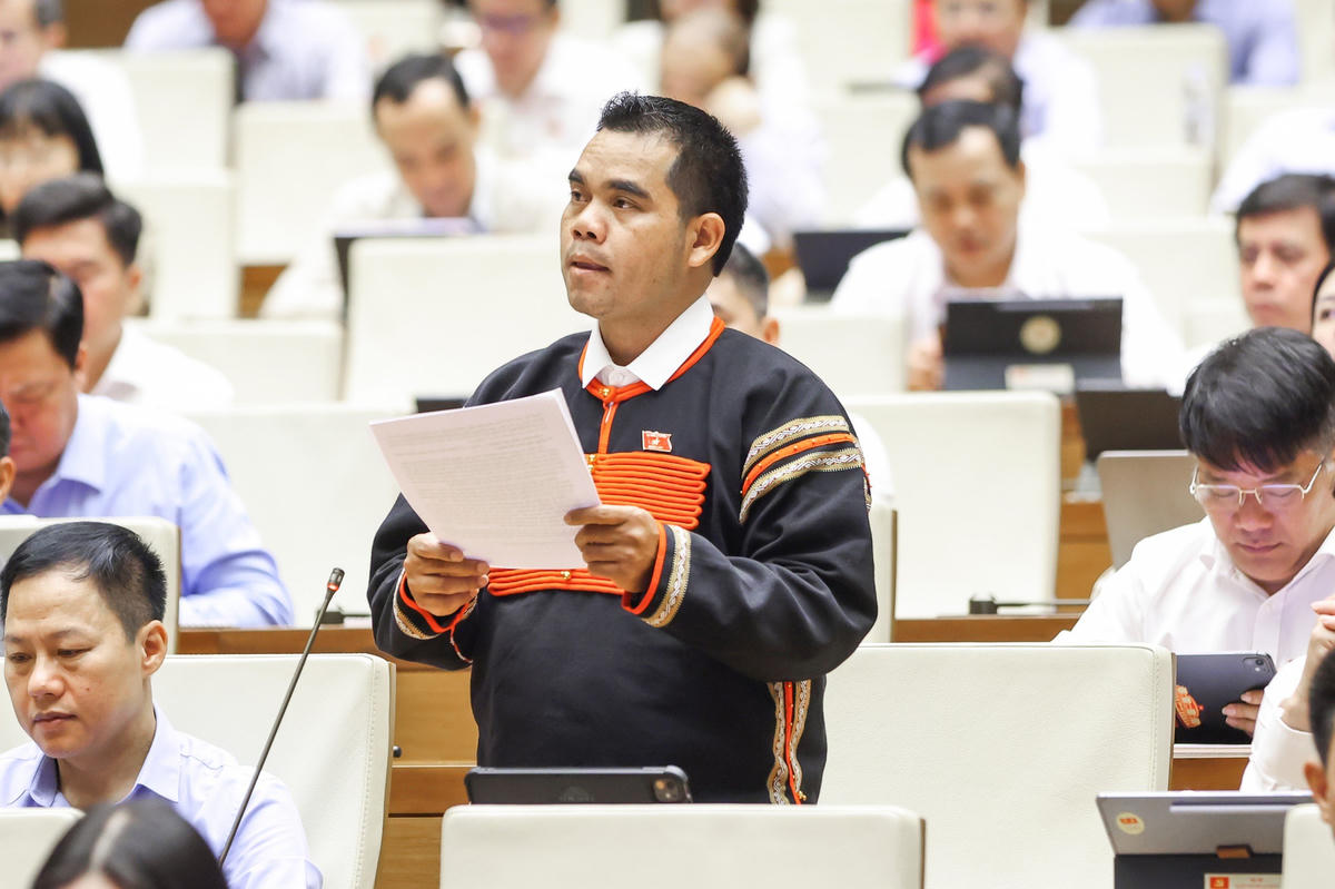 Đại biểu Y Bhen KĐoh, đoàn Đắk Lắk phát biểu