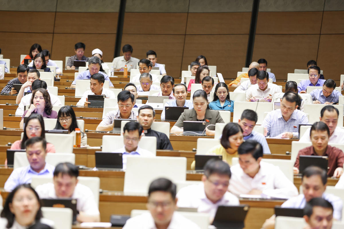 Đầu giờ sáng, Quốc hội thảo luận ở hội trường về dự thảo Nghị quyết của Quốc hội về một số cơ chế, chính sách đột phá phát triển văn hóa Việt Nam.