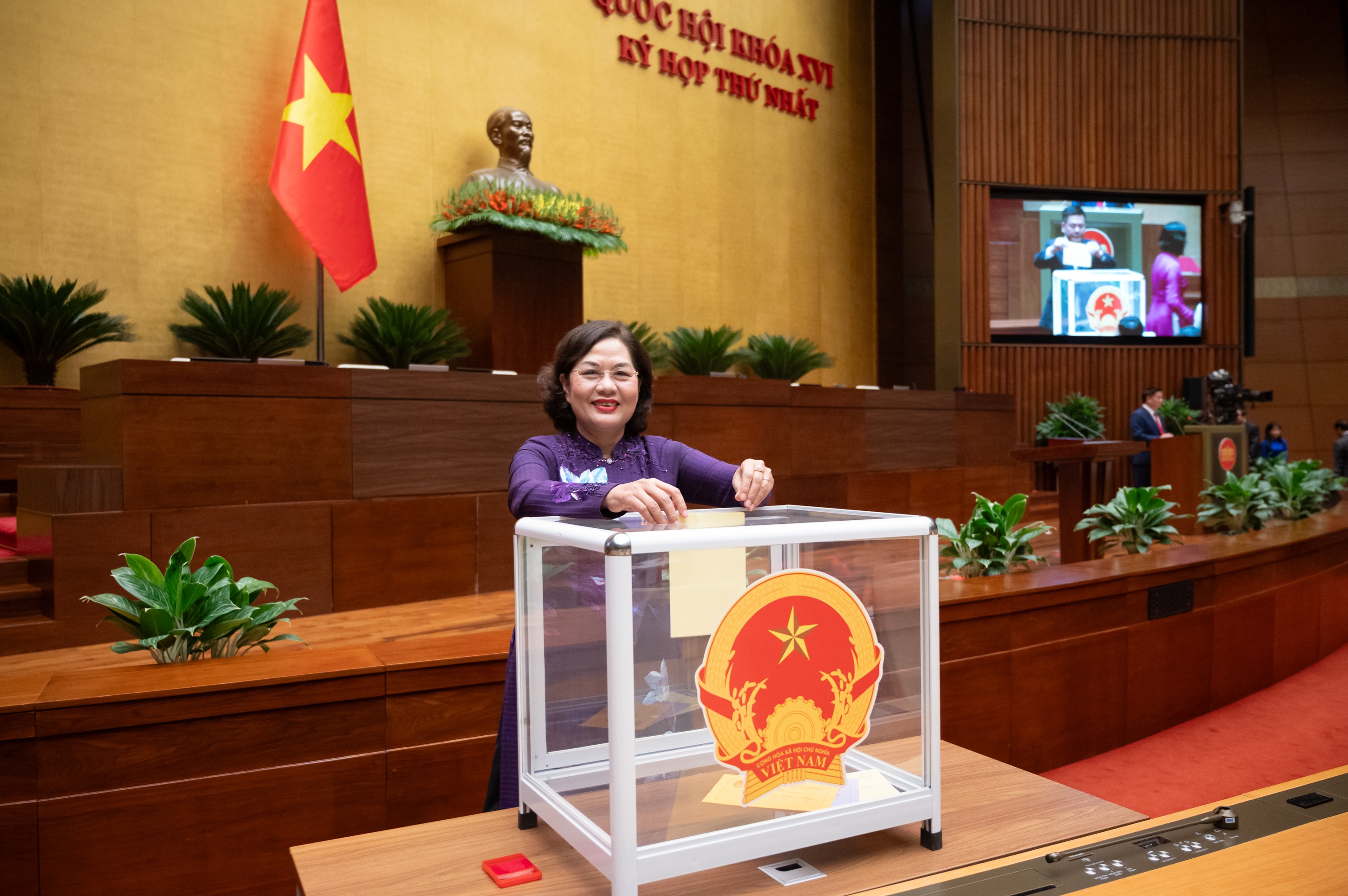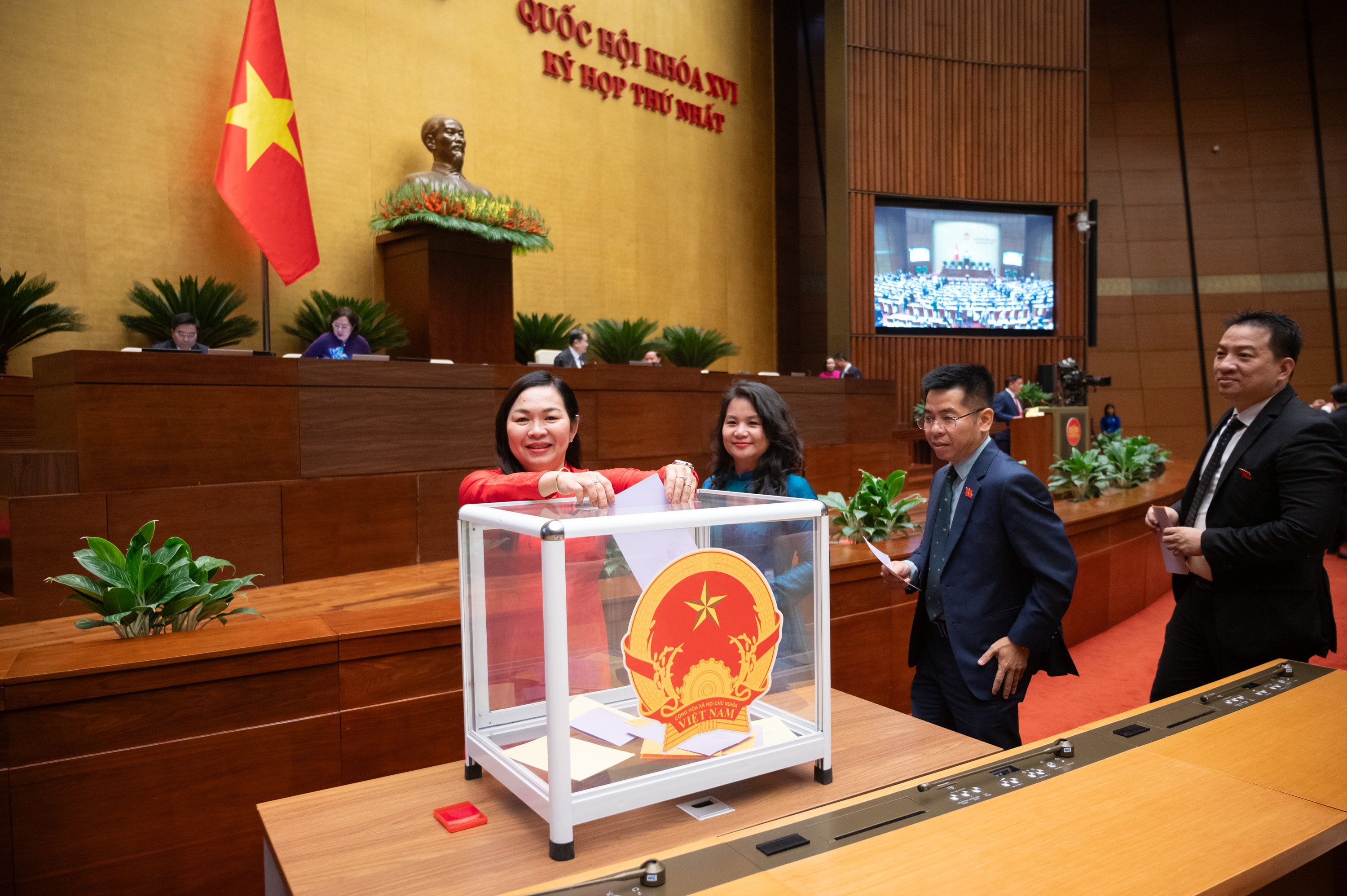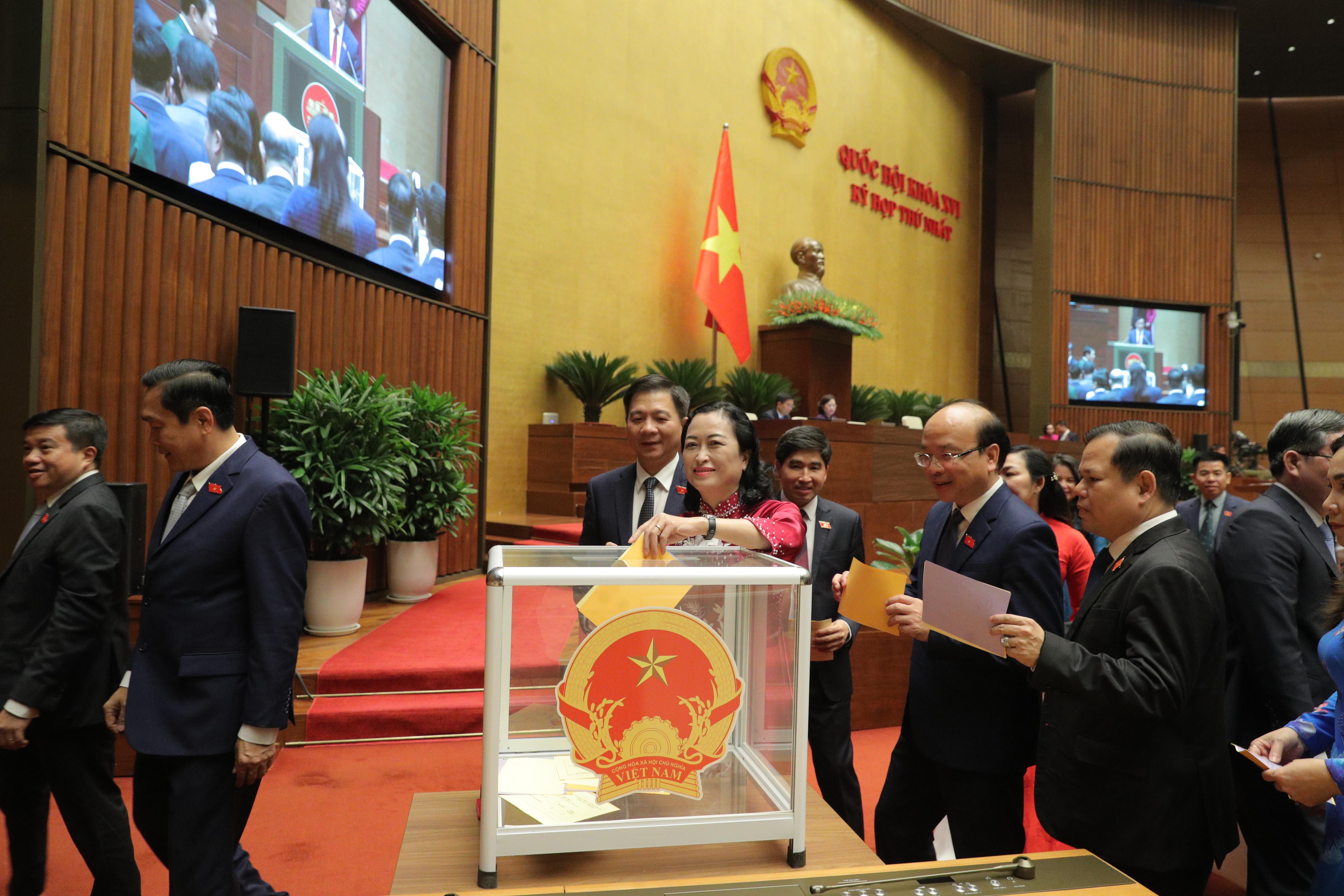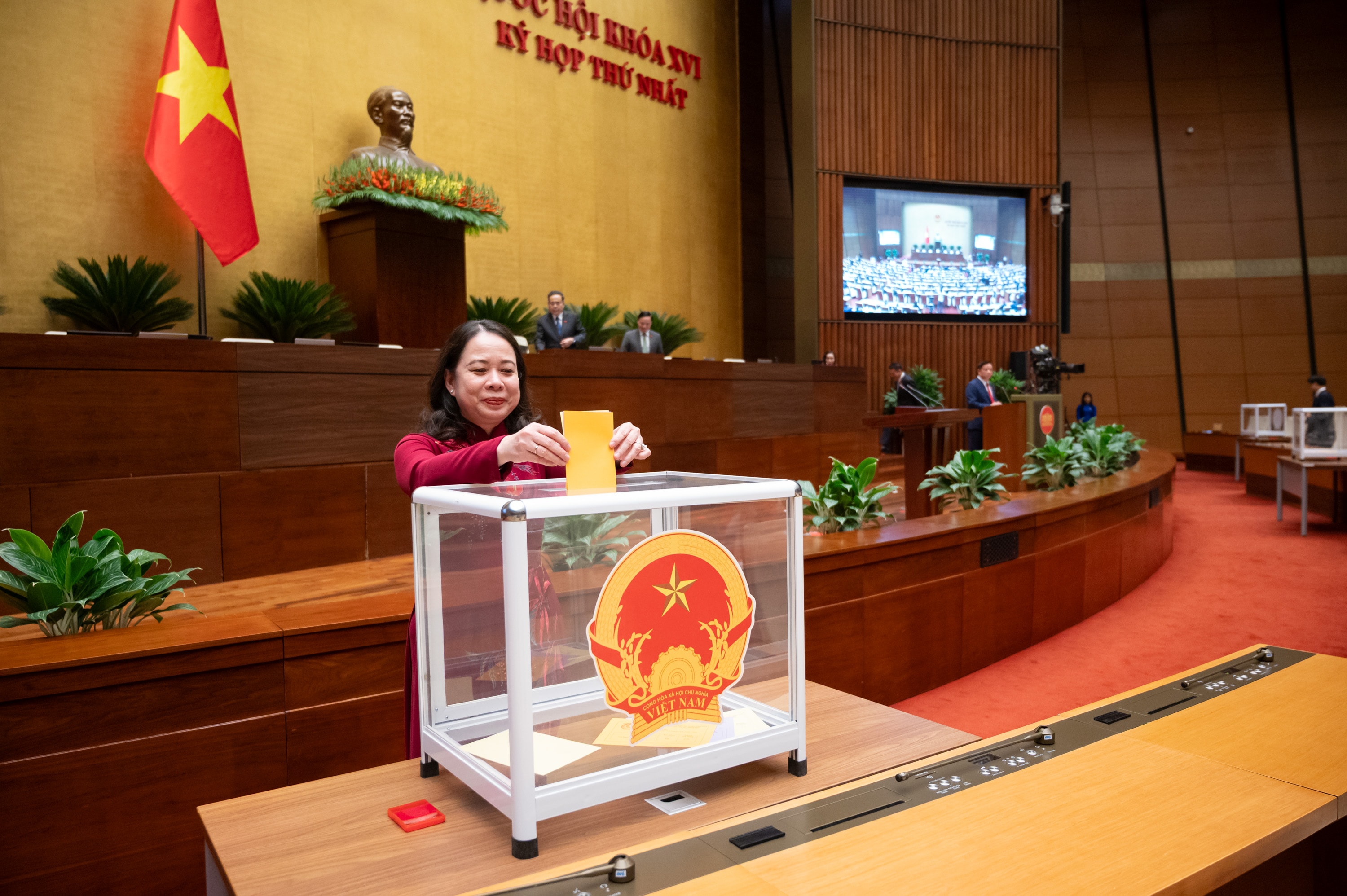 Phó Chủ tịch nước Võ Thị Ánh Xuân bỏ phiếu bầu Thủ tướng Chính phủ. Ảnh: Phạm Thắng