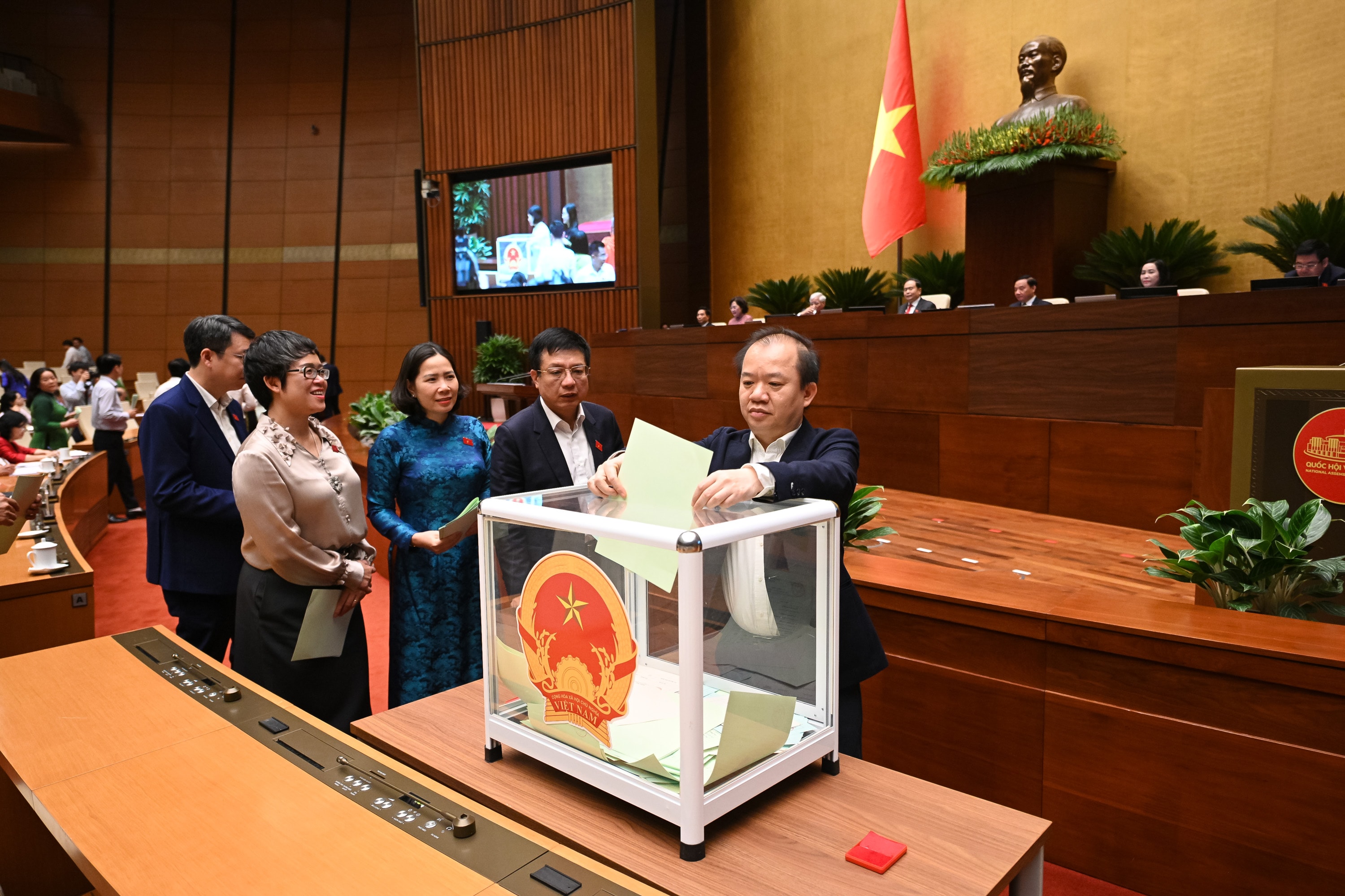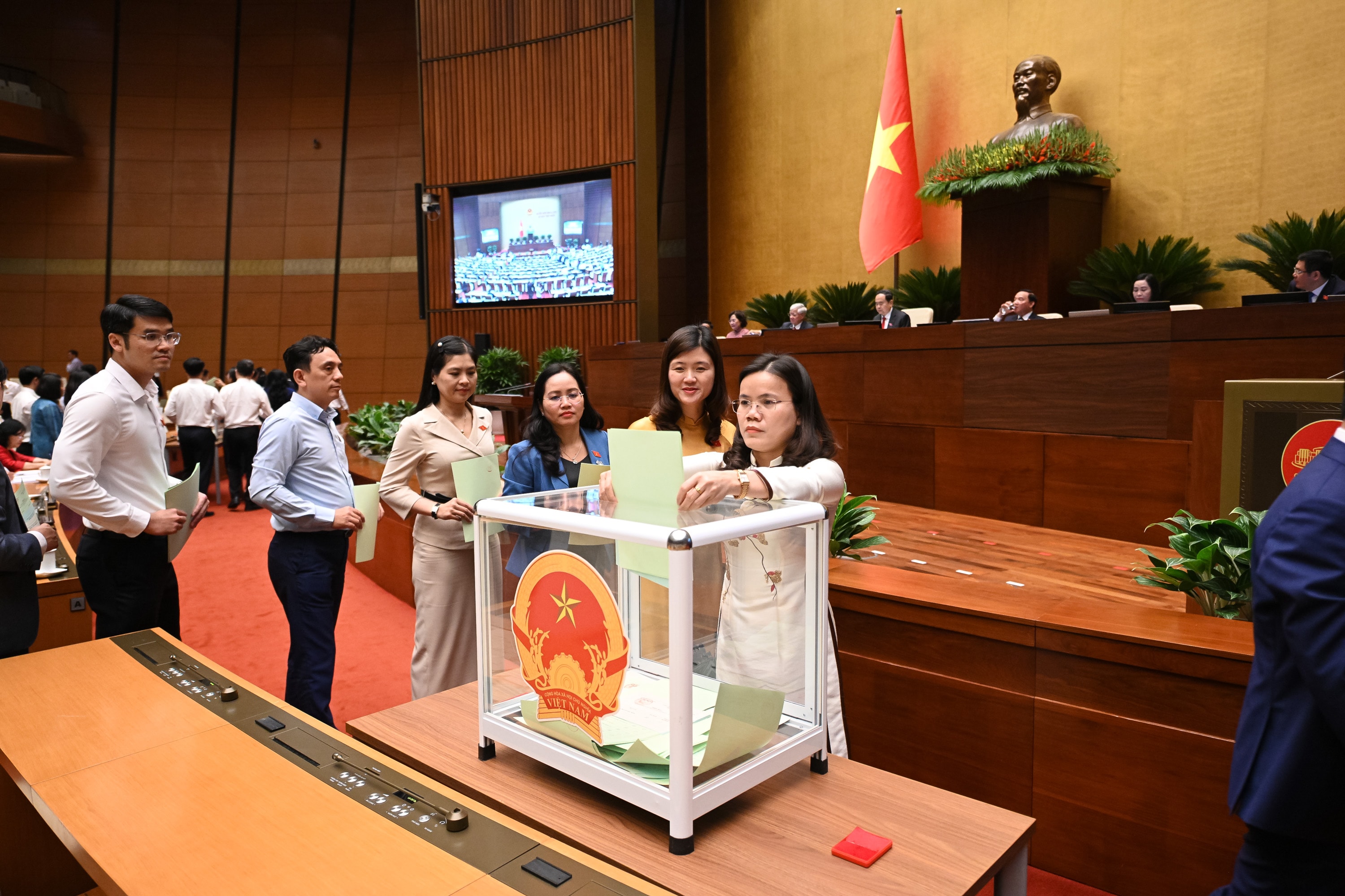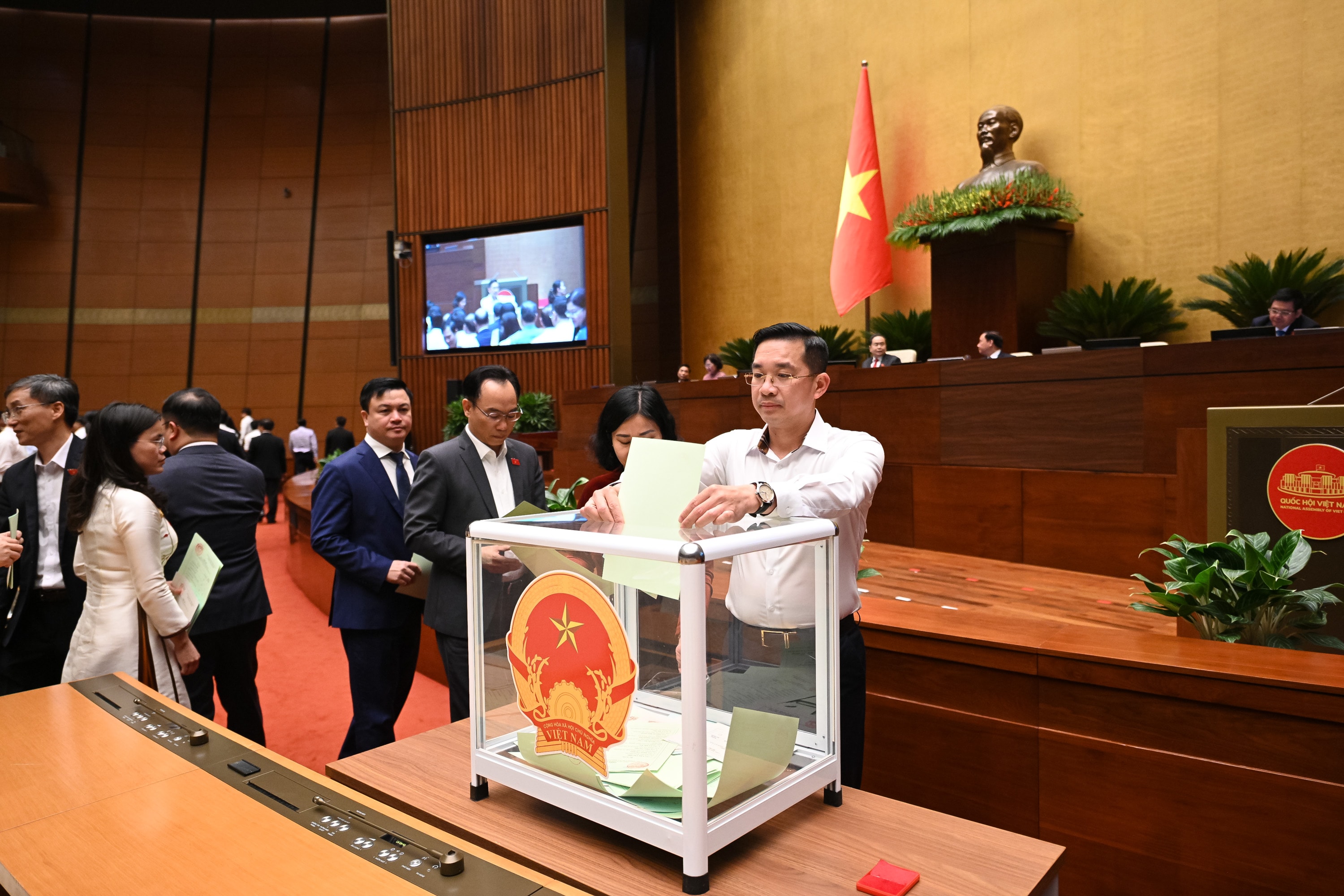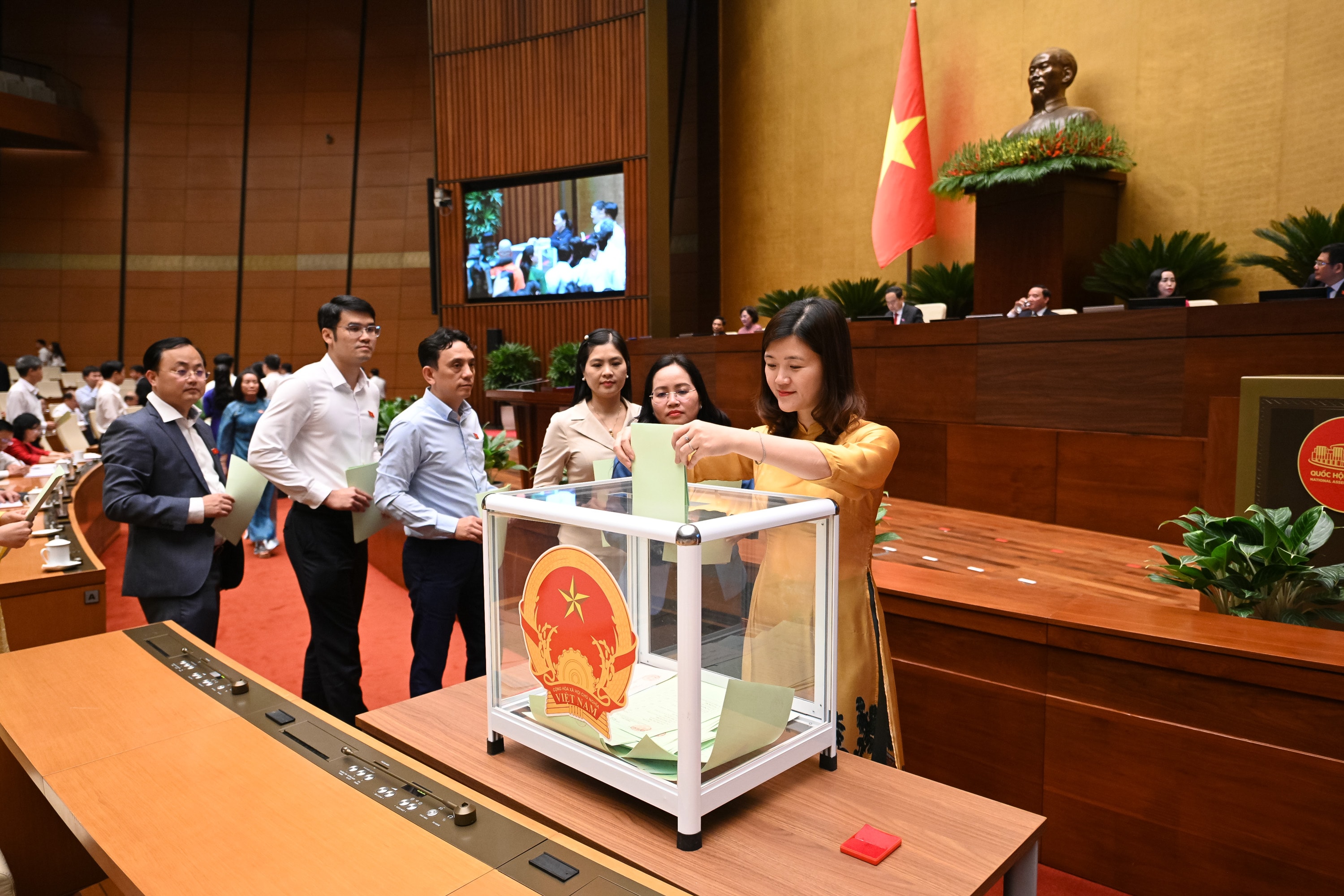 Đại biểu Quốc hội bỏ phiếu. Ảnh: Hồ Long
