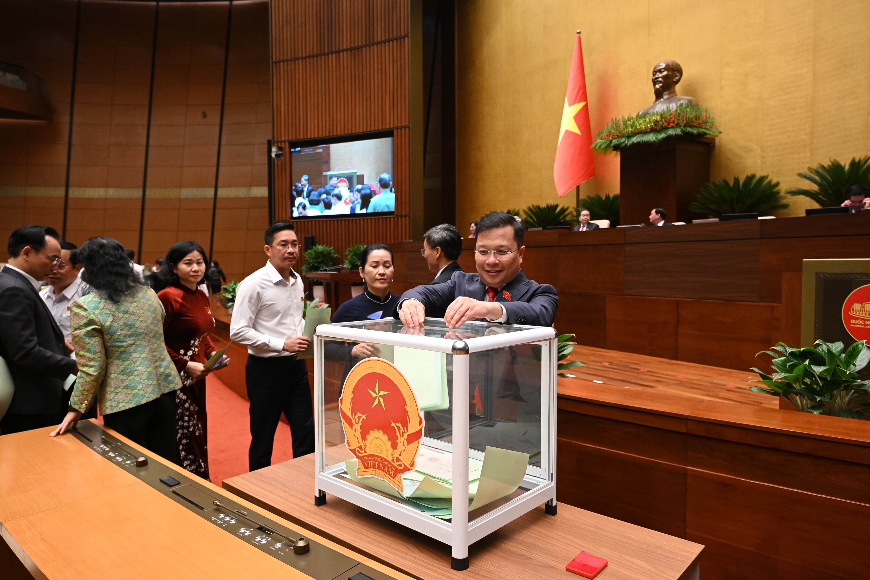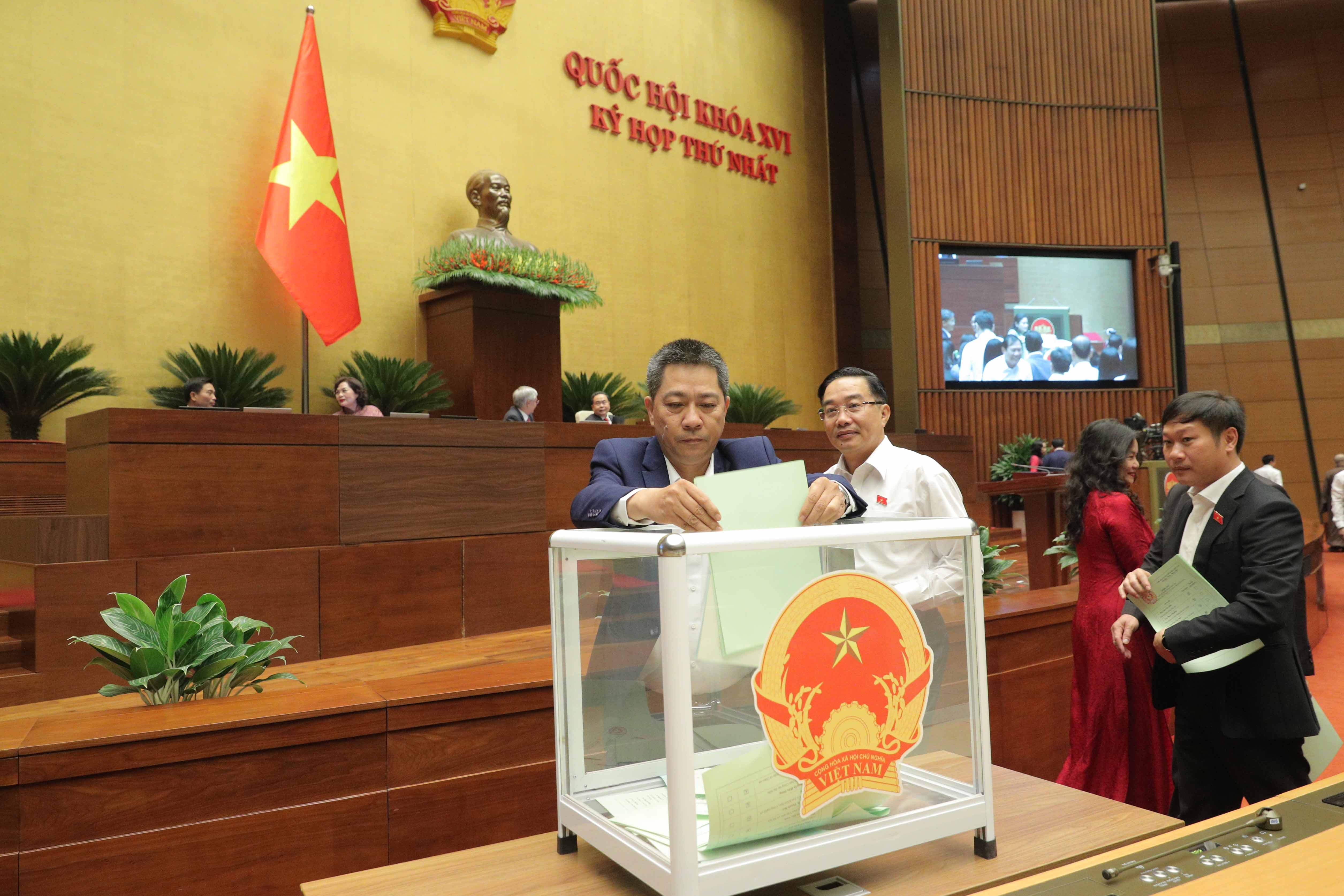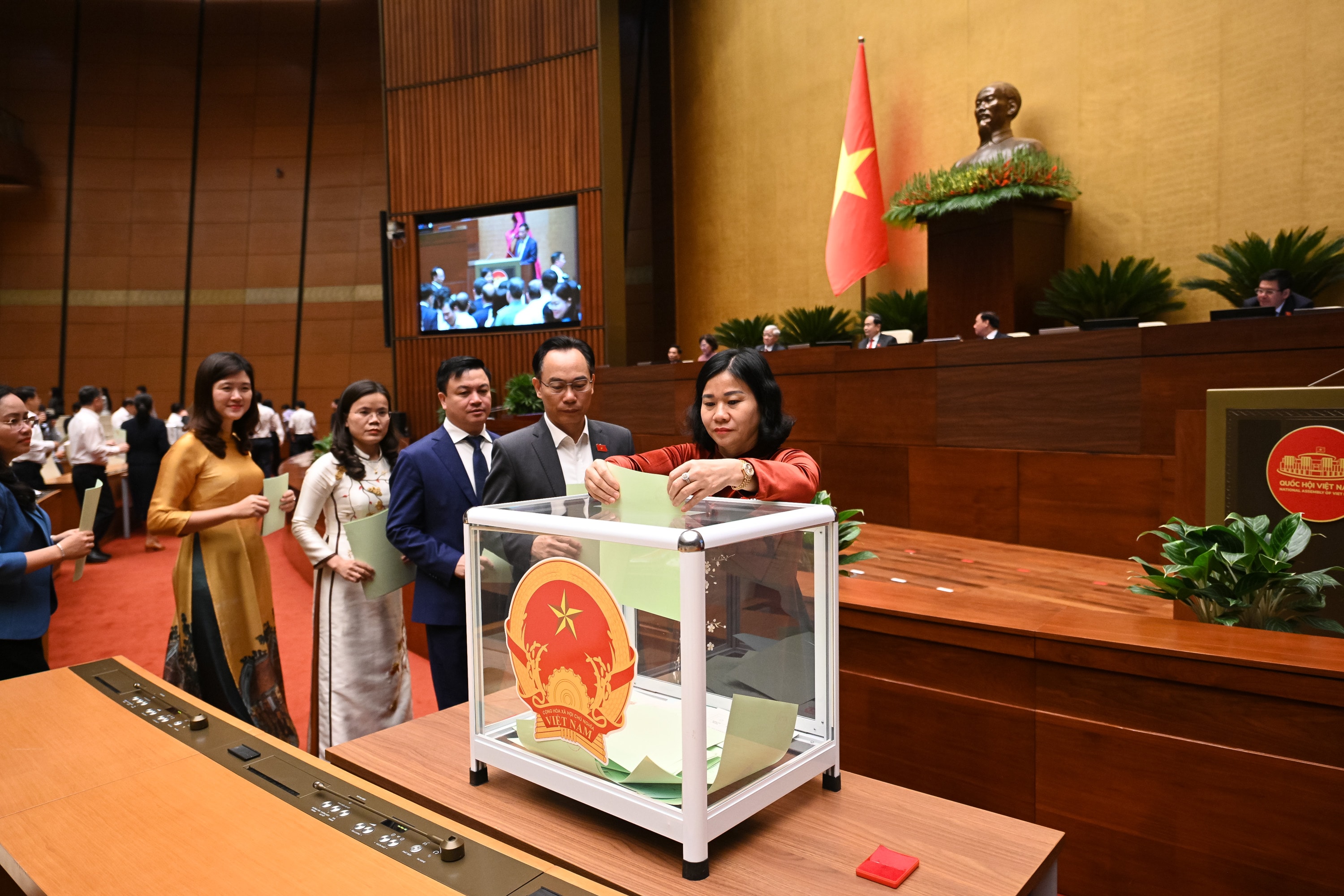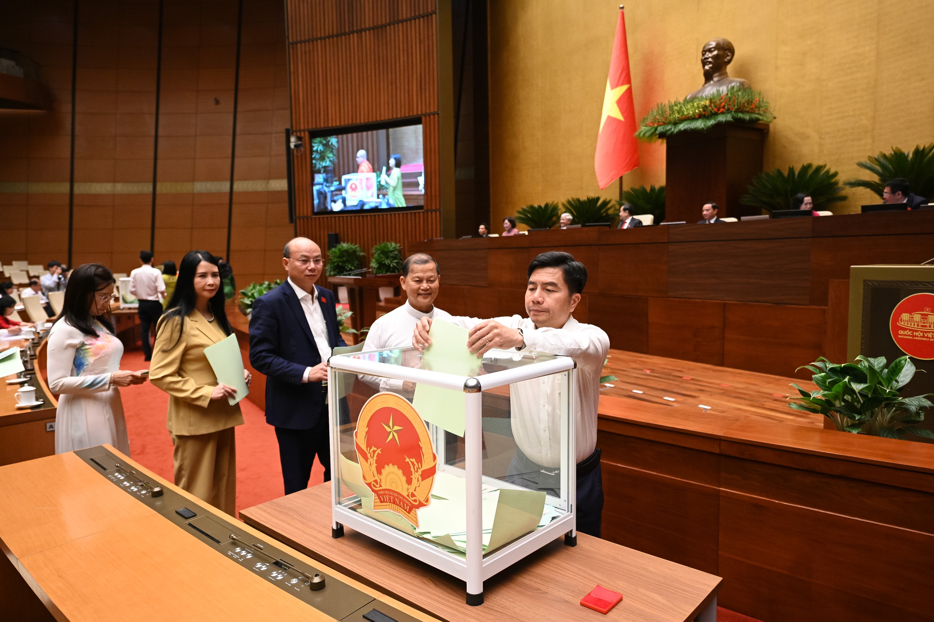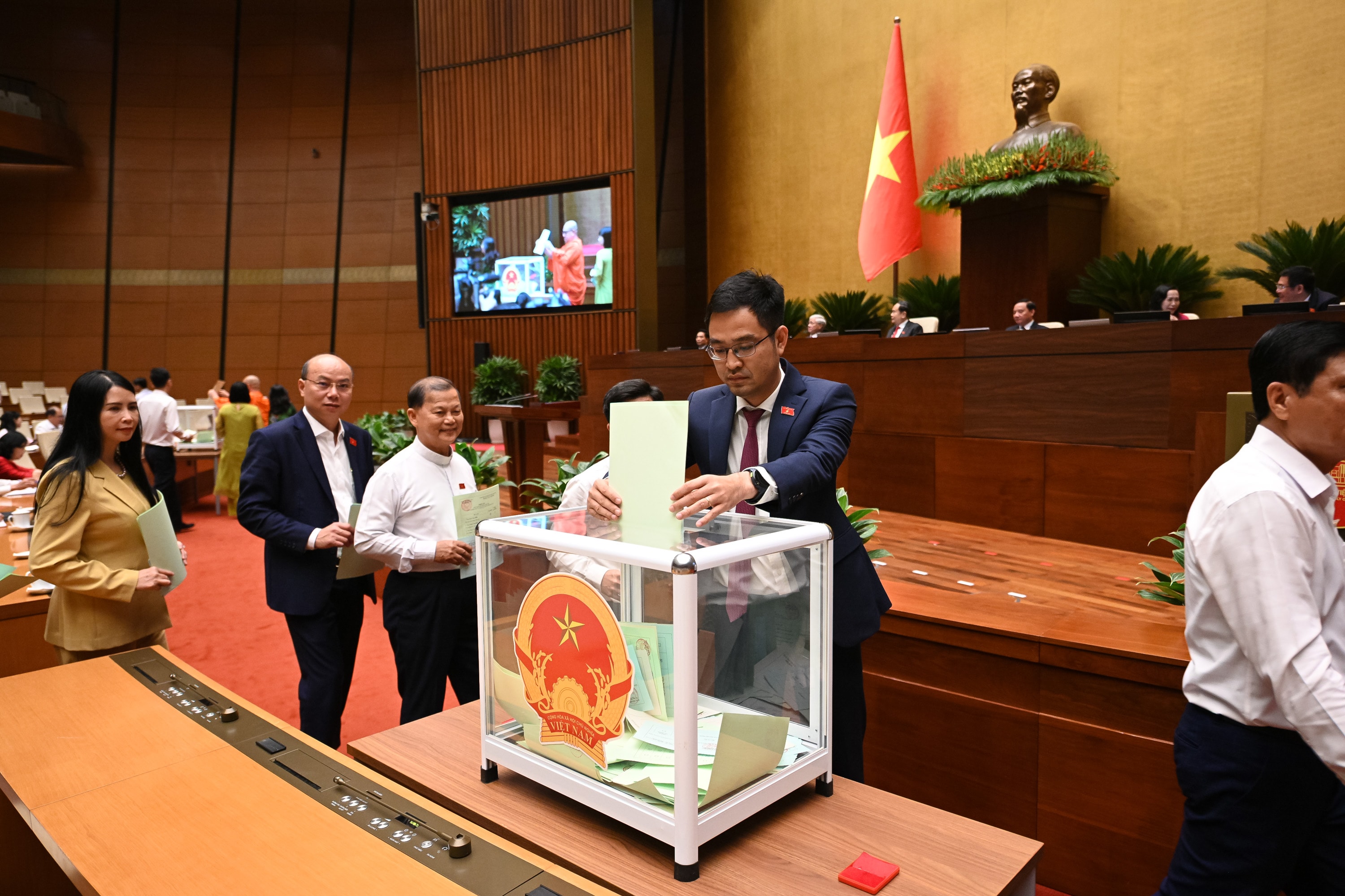 Đại biểu Quốc hội bỏ phiếu. Ảnh: Hồ Long