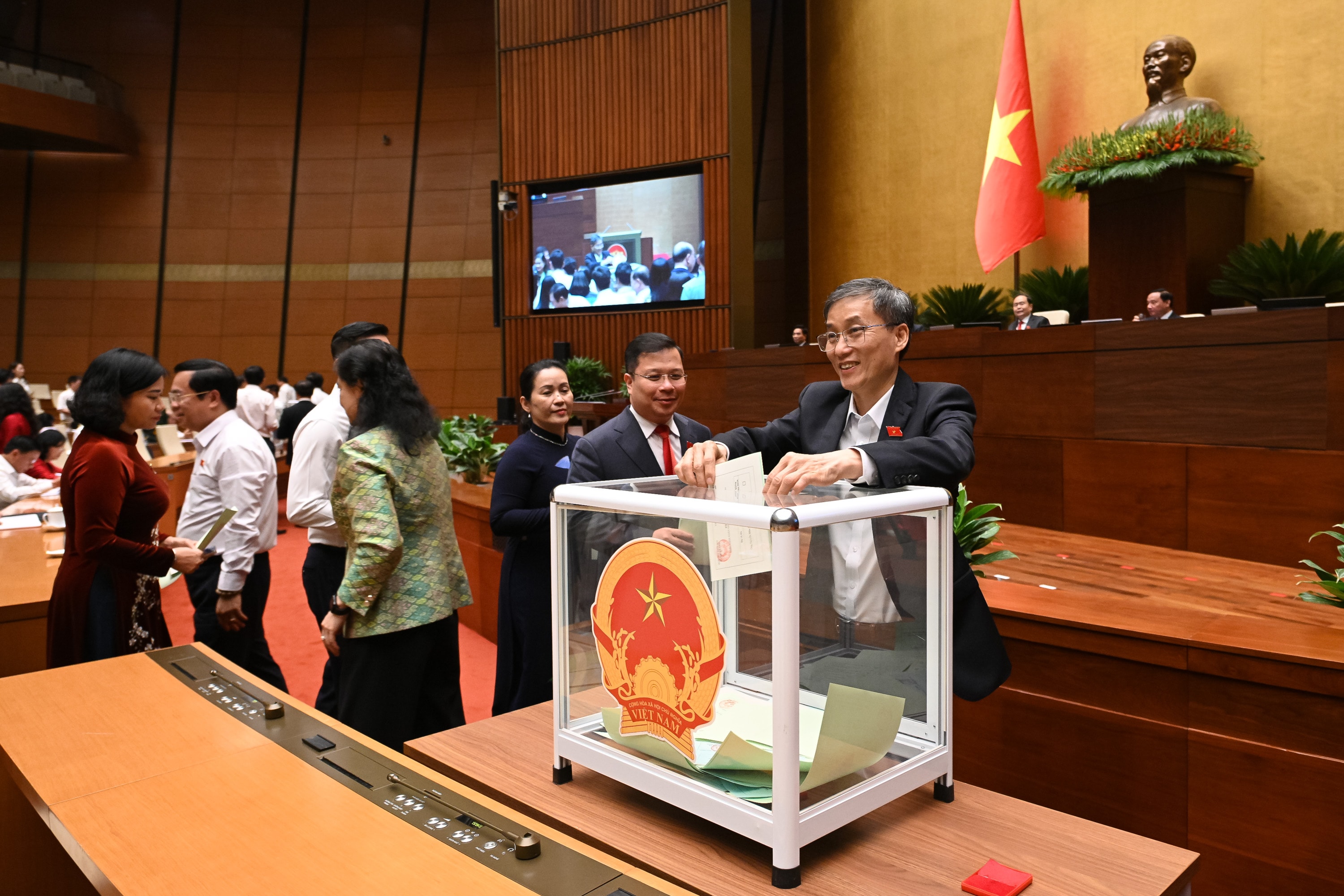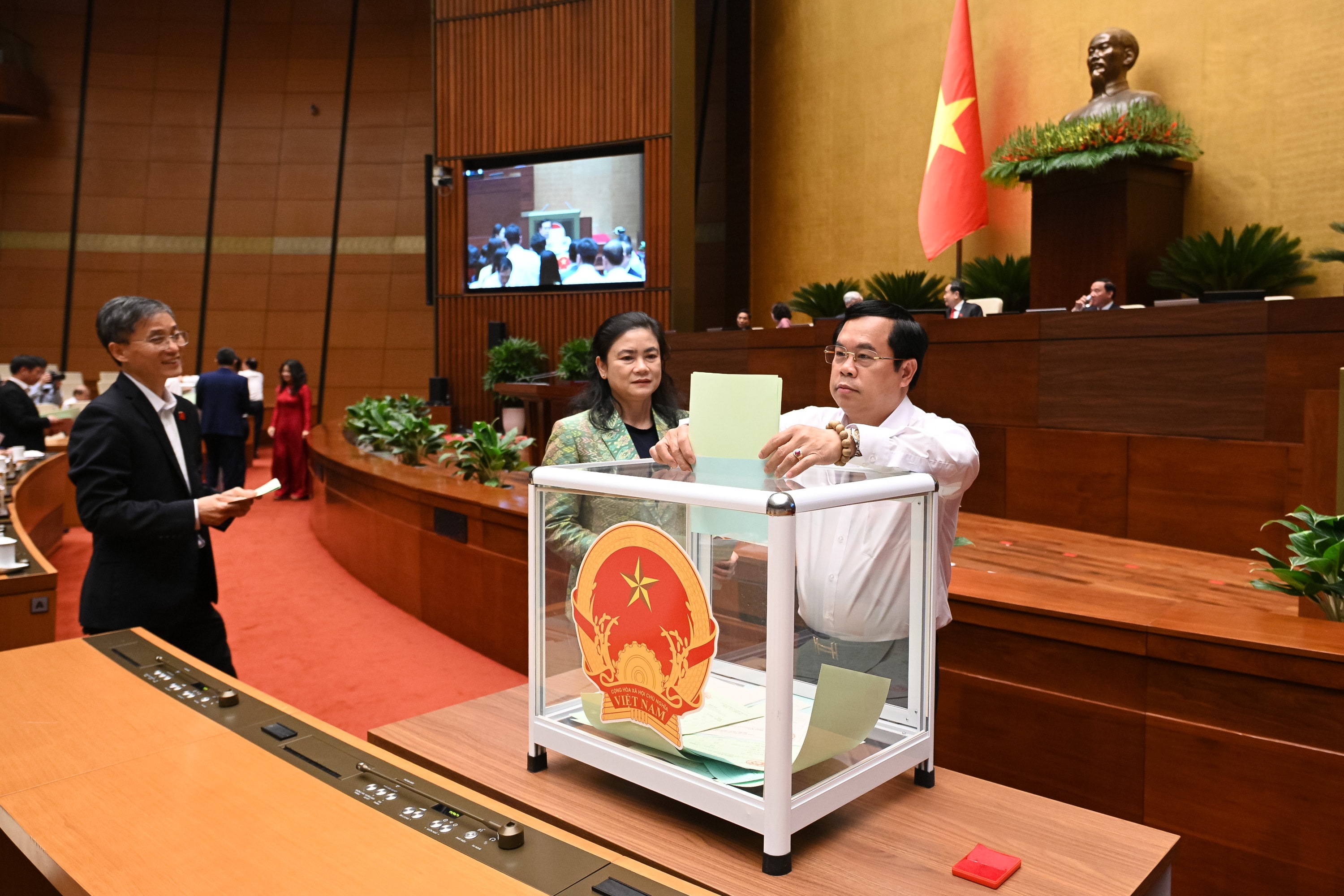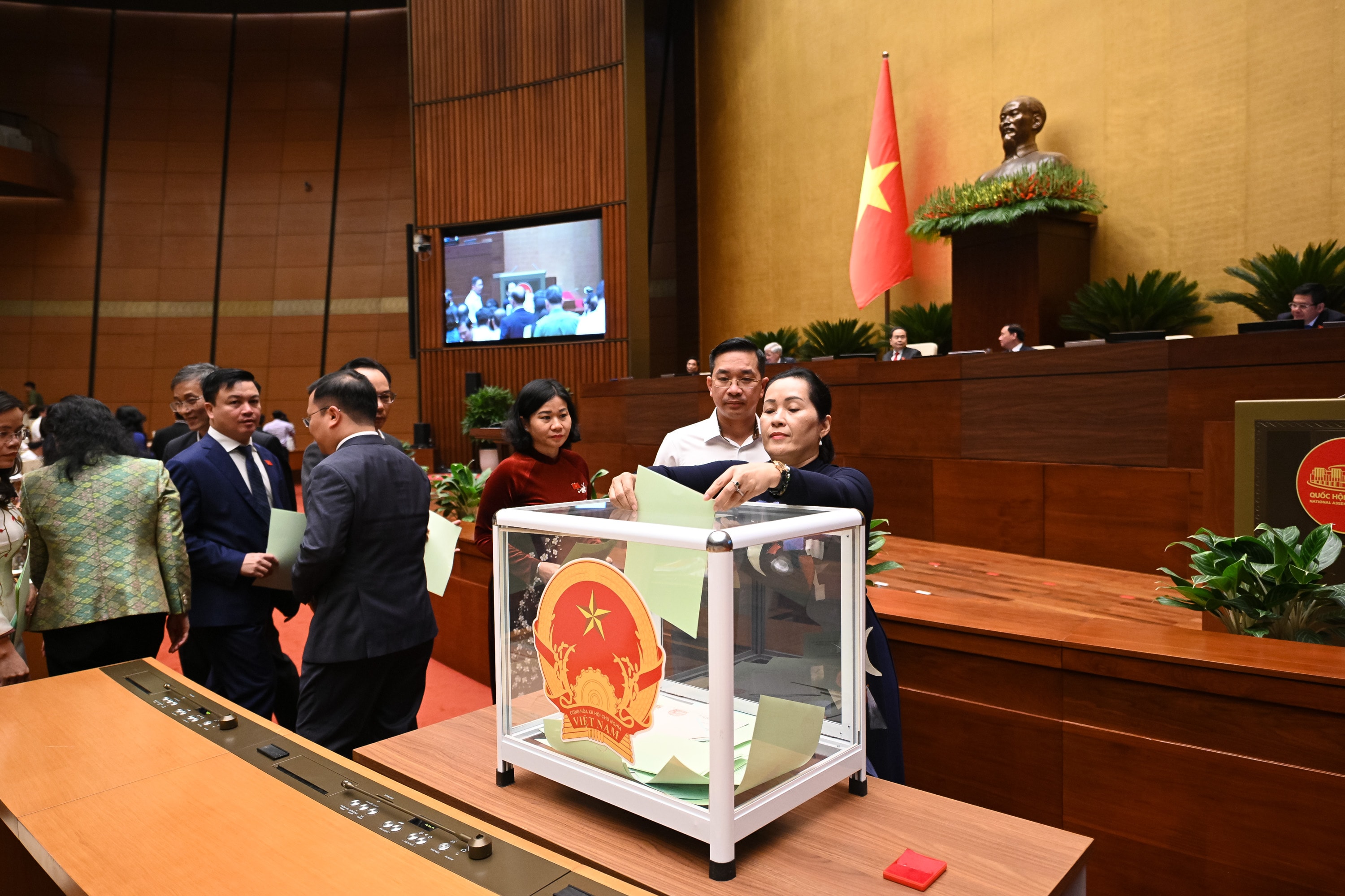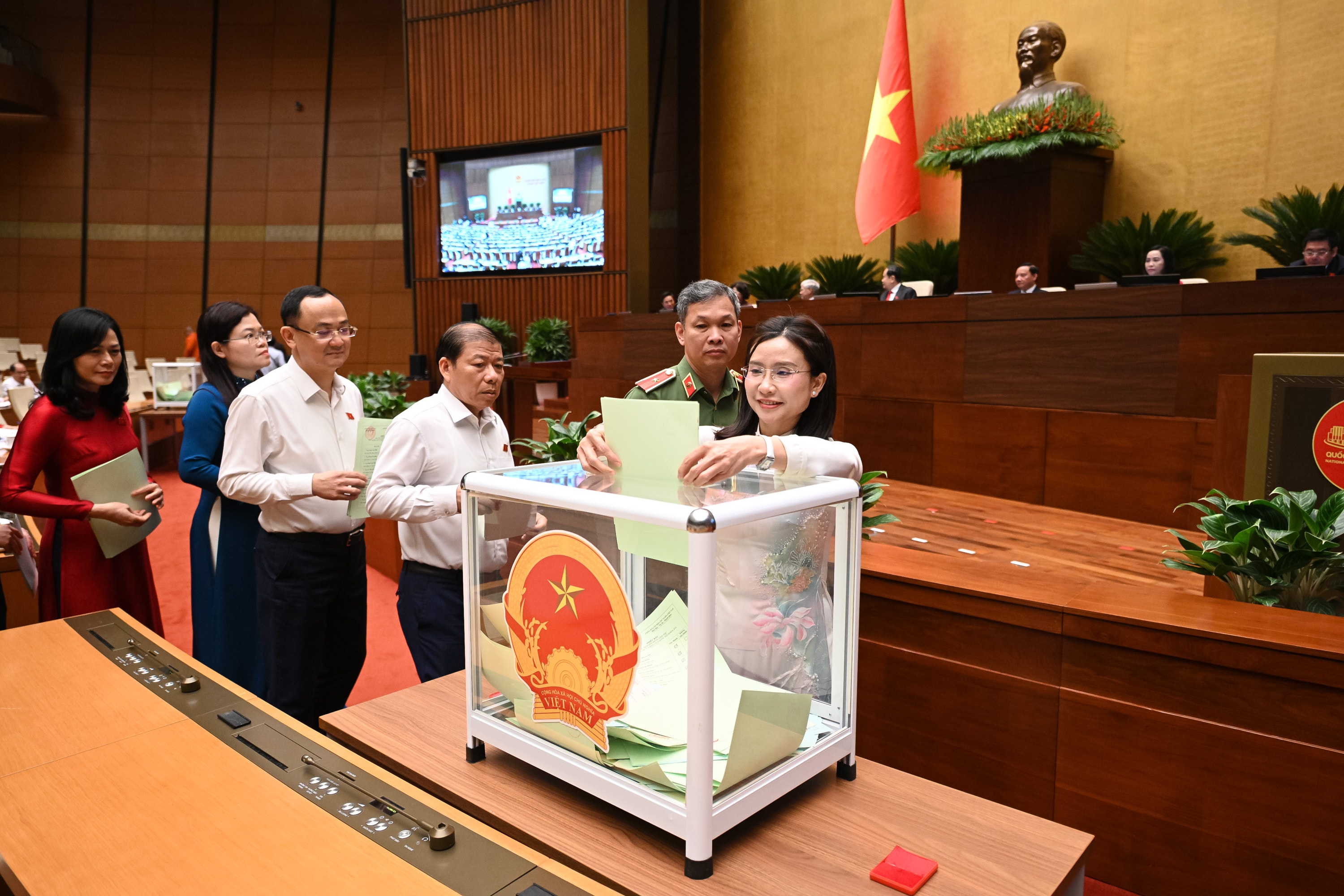 Đại biểu Quốc hội bỏ phiếu. Ảnh: Hồ Long
