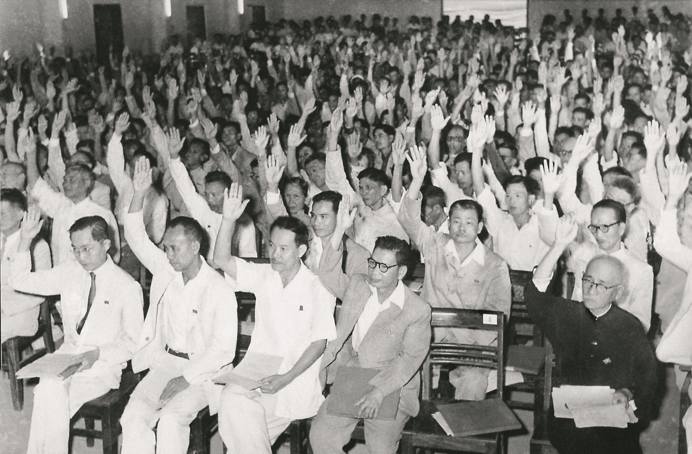 Các đại biểu Quốc hội khóa II nhất trí ra Tuyên bố chống chính sách xâm lược quân sự của Mỹ đối với miền Nam Việt Nam, tại kỳ họp thứ 4, ngày 26/4/1962. Ảnh: Quochoi.vn