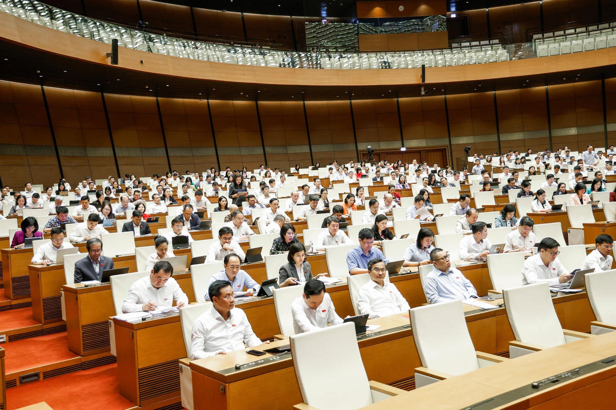 Các đại biểu Quốc hội tham dự phiên thảo tại hội trường sáng 11/4