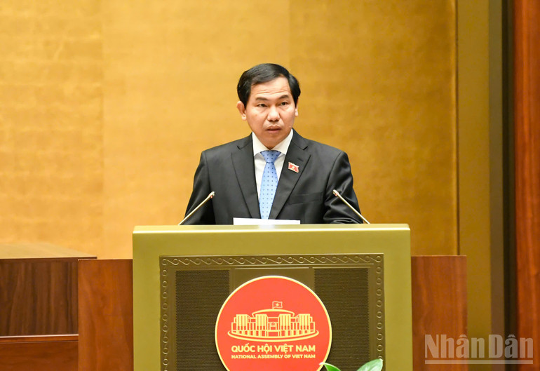 Tổng Thư ký Quốc hội, Chủ nhiệm Văn phòng Quốc hội Lê Quang Mạnh trình bày Tờ trình. (Ảnh: DUY LINH)
