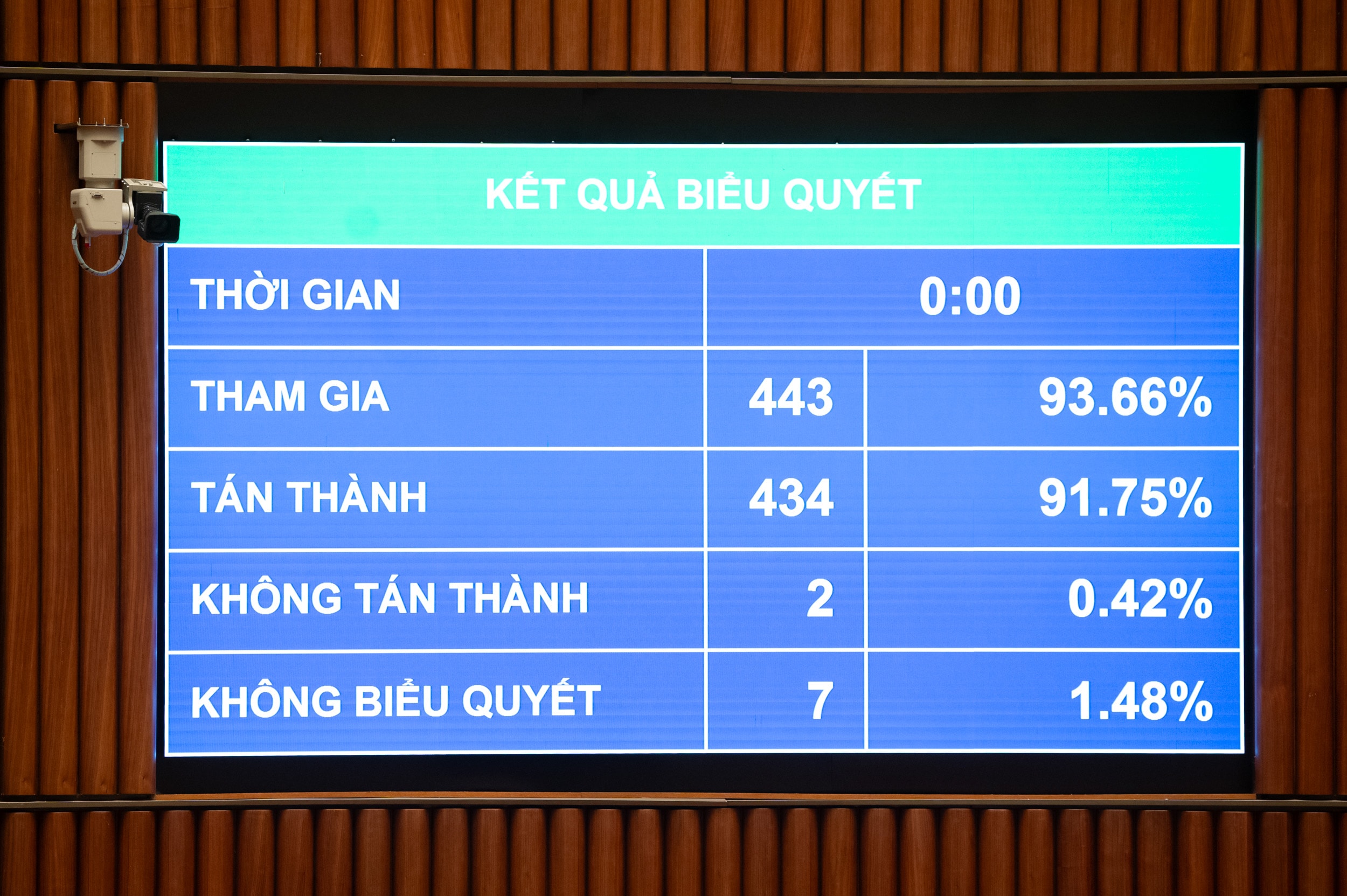 Quốc hội biểu quyết thông qua Luật An ninh mạng với 434/443 ĐBQH có mặt tán thành. Ảnh: Phạm Thắng