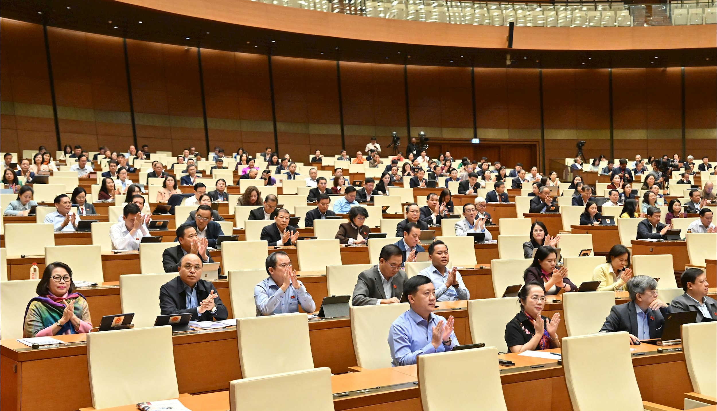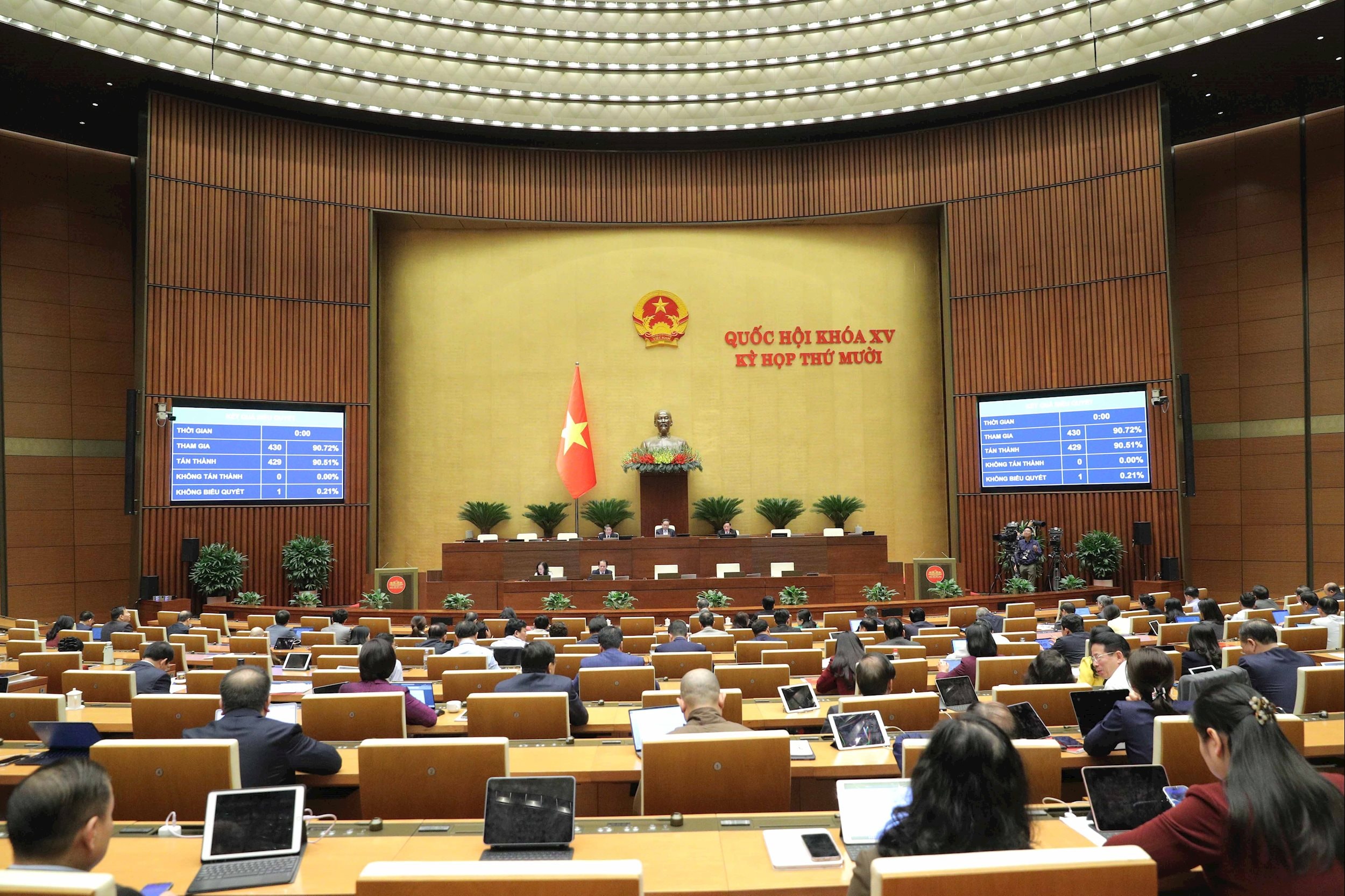 Quốc hội biểu quyết thông qua Luật Chuyển giao người đang chấp hành án phạt tù. Ảnh: Hồ Long