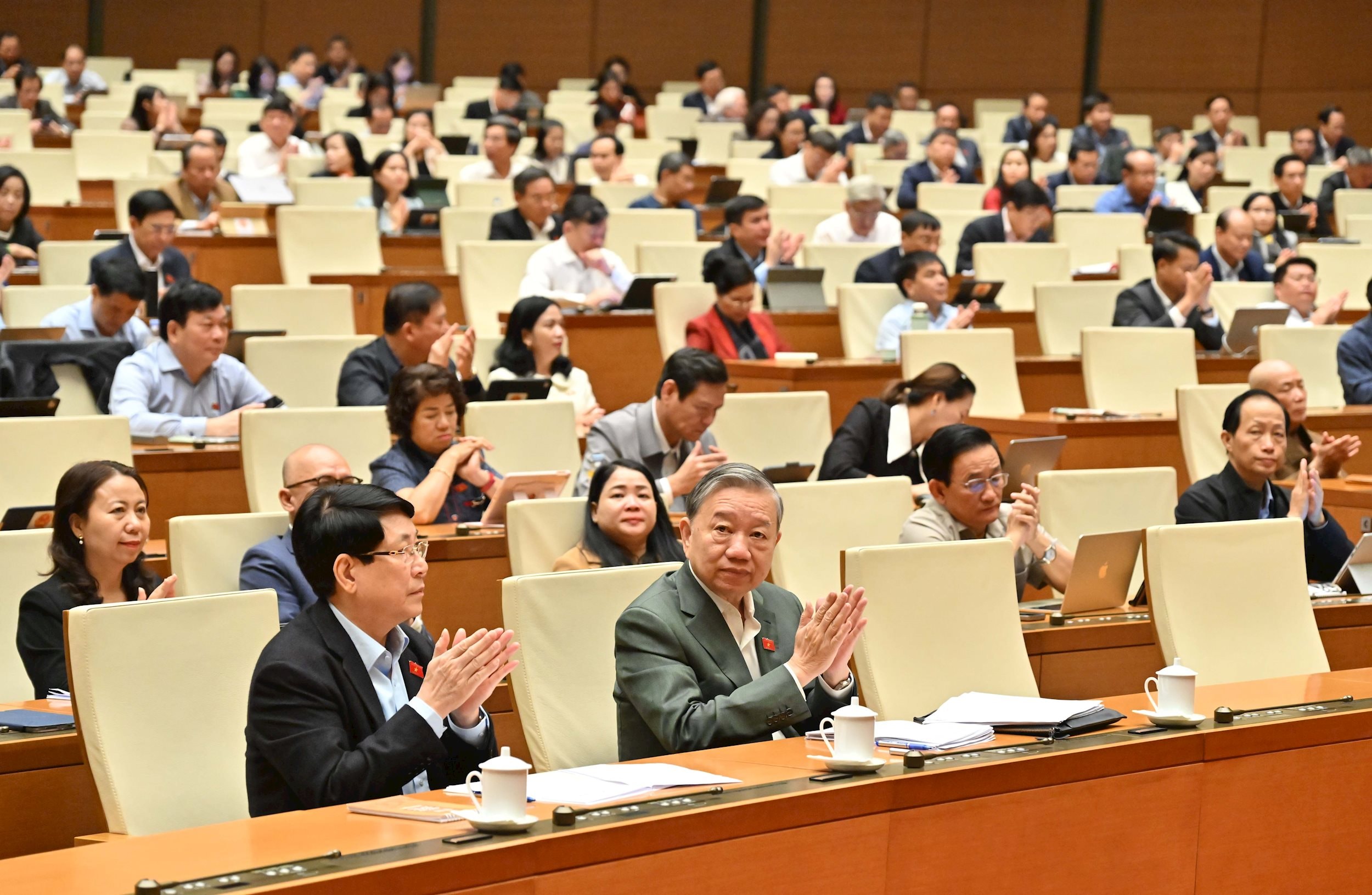 Tổng Bí thư Tô Lâm, Chủ tịch nước Lương Cường và các đại biểu dự phiên họp. Ảnh: Quang Khánh