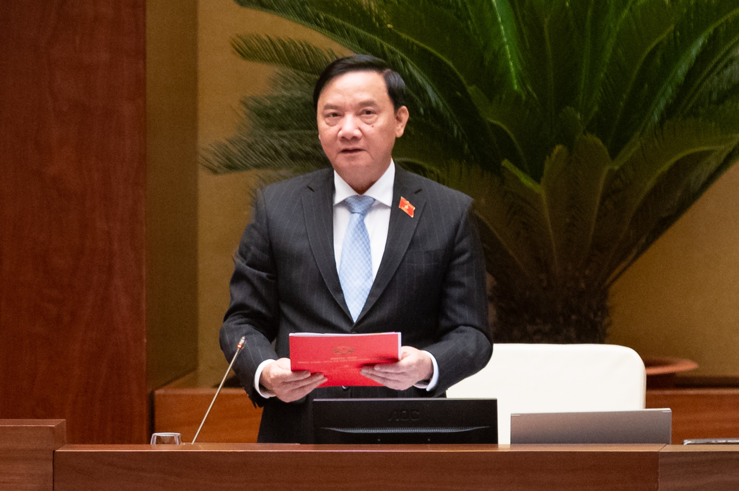 Chủ nhiệm Ủy ban Pháp luật và Tư pháp Hoàng Thanh Tùng trình bày Báo cáo. Ảnh: Quang Khánh