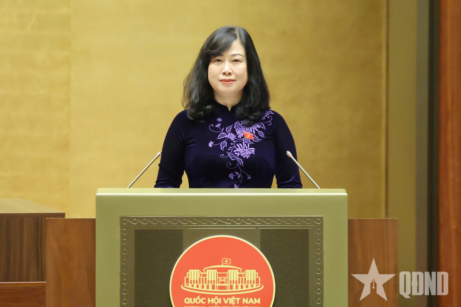 Bộ trưởng Bộ Y tế Đào Hồng Lan phát biểu trước Quốc hội. Ảnh: TRỌNG HẢI
