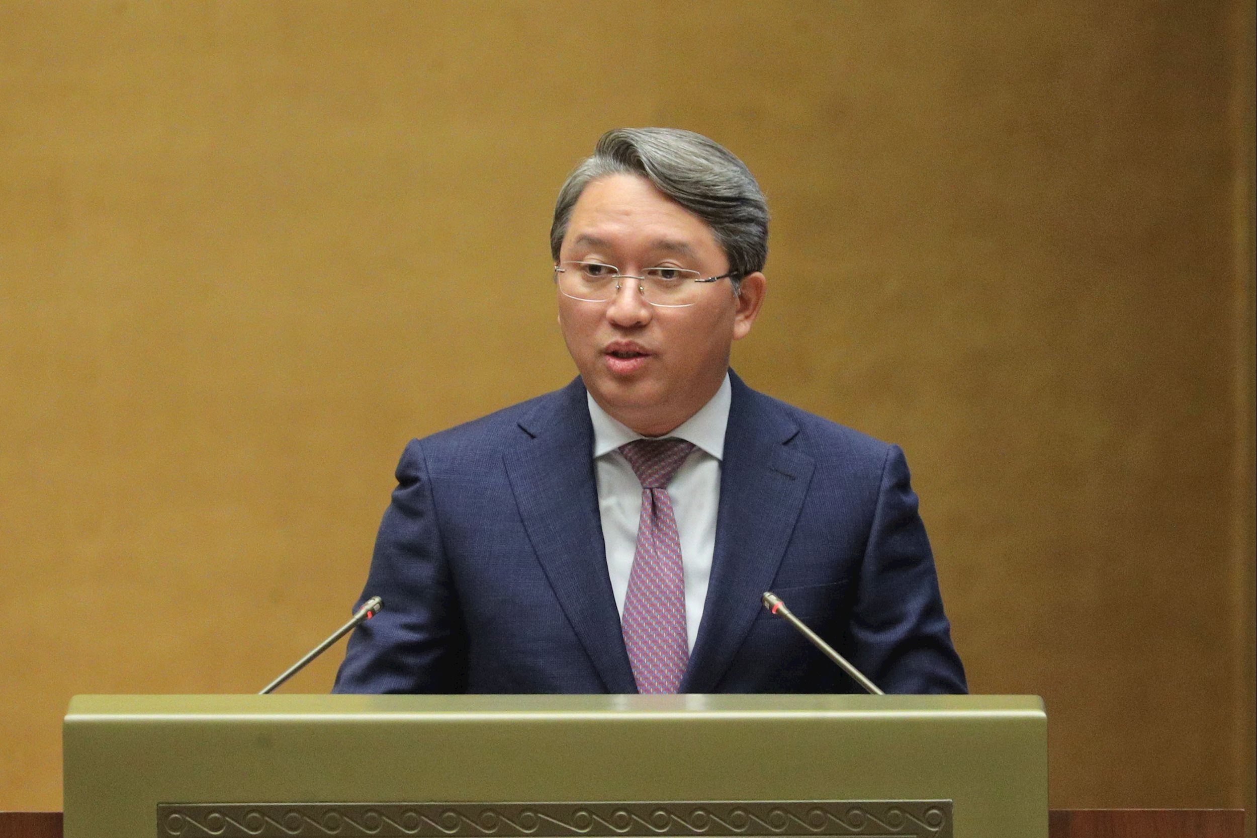 Bộ trưởng Bộ Tư pháp Nguyễn Hải Ninh trình bày Báo cáo về việc tiếp thu, giải trình, chỉnh lý dự thảo Luật Giám định tư pháp (sửa đổi). Ảnh: Hồ Long