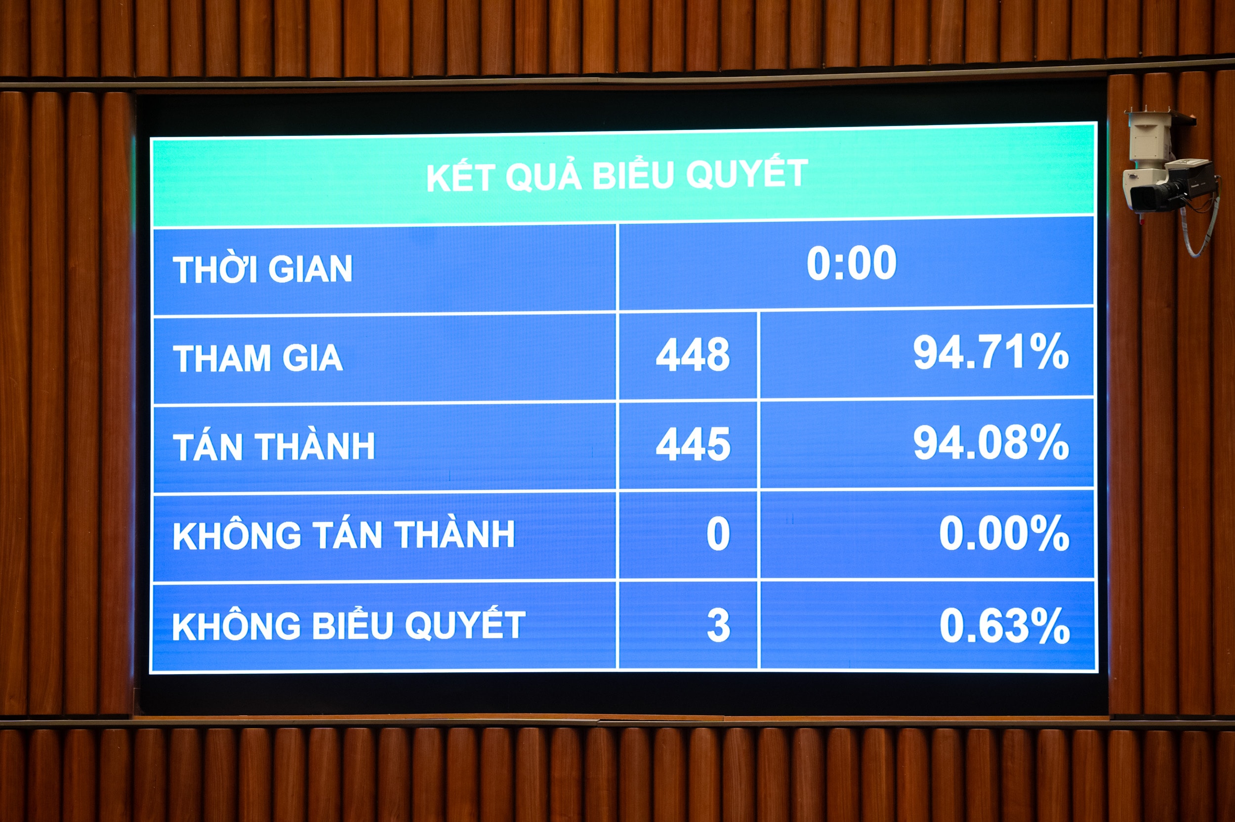 Quốc hội biểu quyết thông qua Luật sửa đổi, bổ sung một số điều của Luật Điều ước quốc tế, với 445/448 tổng số ĐBQH có mặt tán thành. Ảnh: Phạm Thắng