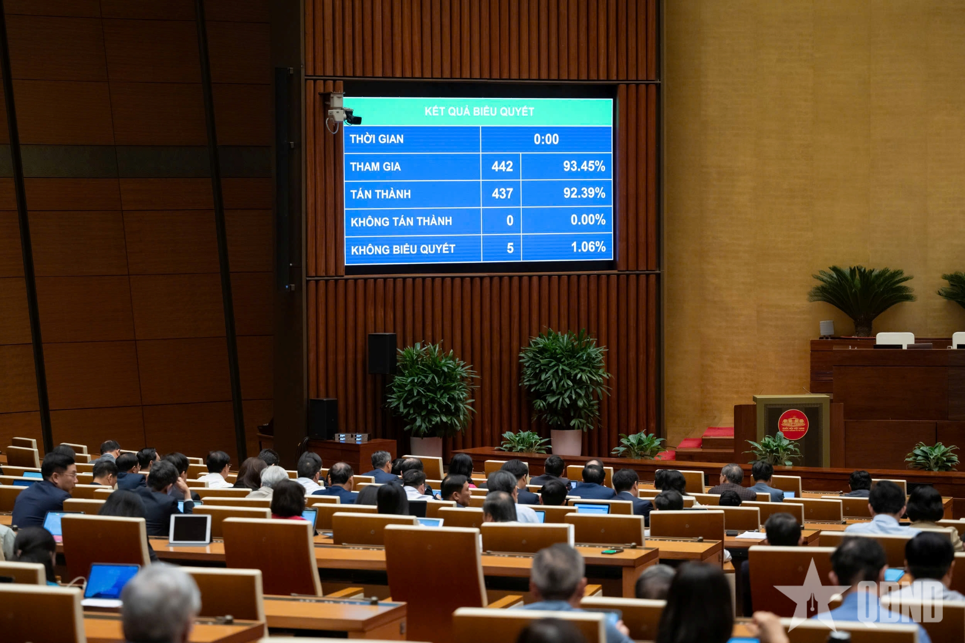 Quốc hội thông qua Luật Viên chức (sửa đổi) với 437 đại biểu tán thành. Ảnh: TRỌNG HẢI