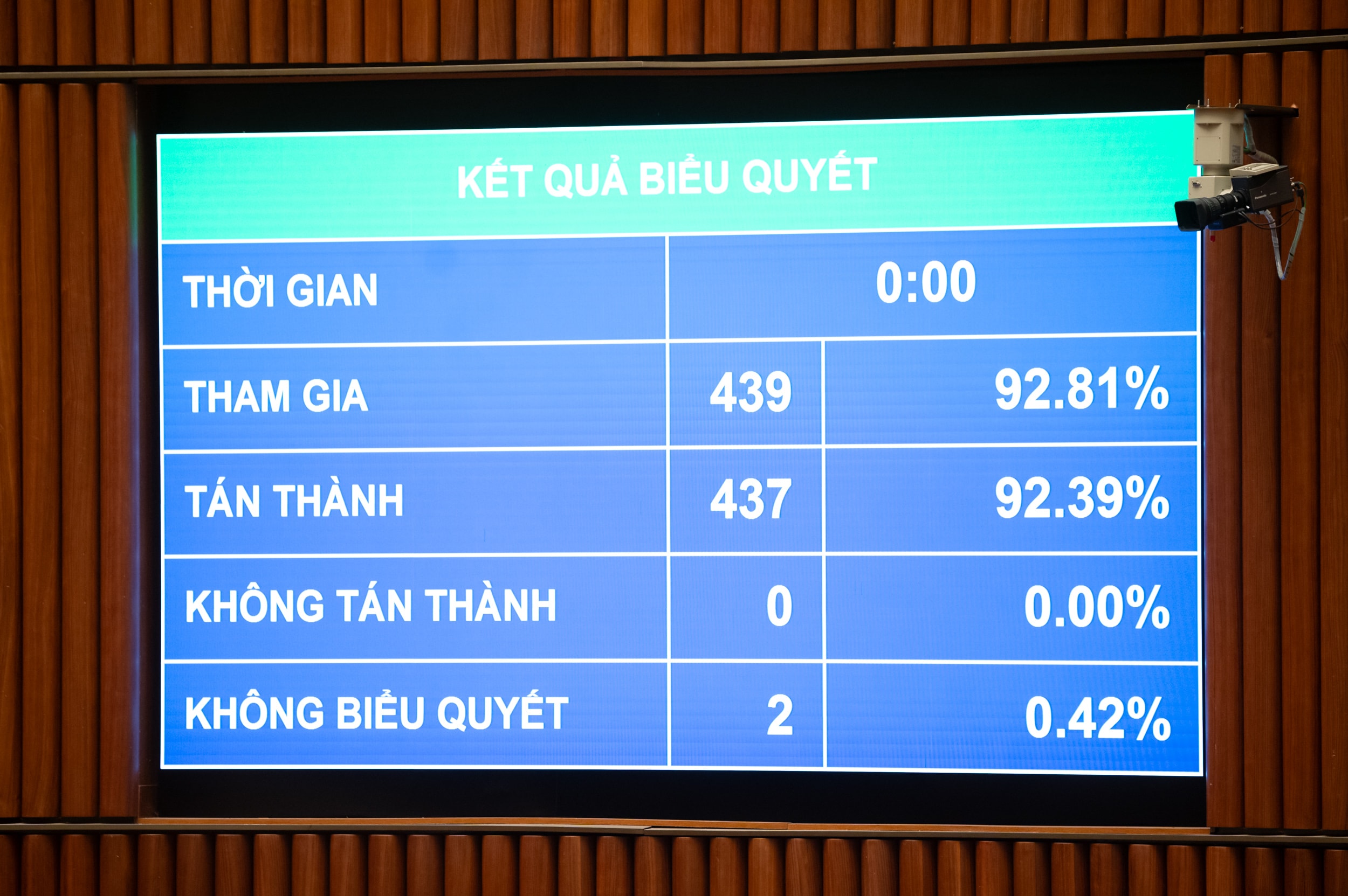 Quốc hội biểu quyết thông qua Luật Xây dựng (sửa đổi) với 437/439 ĐBQH có mặt tán thành. Ảnh: Phạm Thắng