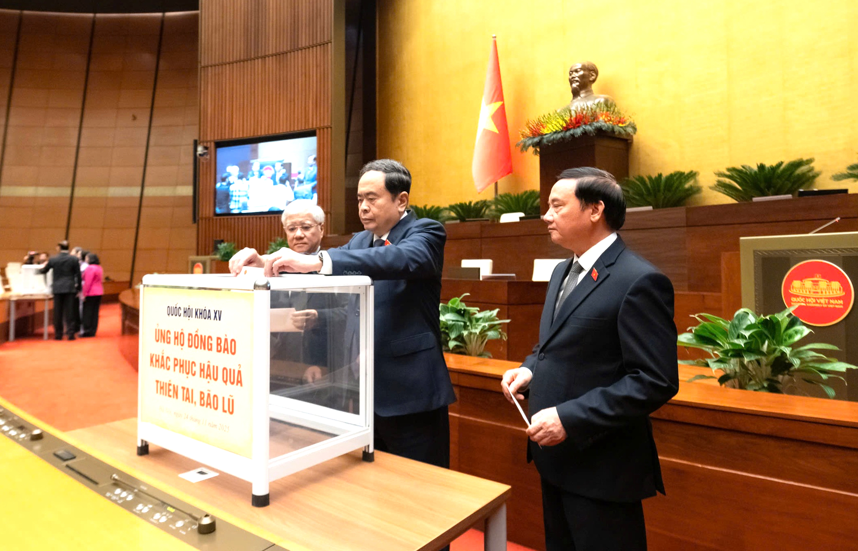 Chia sẻ, đồng cảm với các địa phương và nhân dân vùng bị thiên tai, Ủy ban Thường vụ Quốc hội kêu gọi toàn thể đại biểu Quốc hội, cán bộ, công chức, viên chức, người lao động tại những cơ quan của Quốc hội, Văn phòng Quốc hội ủng hộ tối thiểu một ngày lương để chung tay cùng nhân dân khắc phục hậu quả bão lũ.
