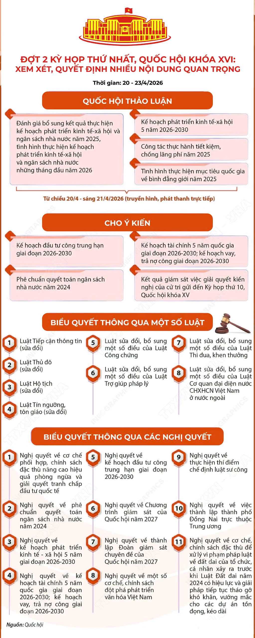 Bắt đầu Đợt 2 Kỳ họp thứ Nhất, Quốc hội họp, cho ý kiến về 04 Nghị quyết quan trọng