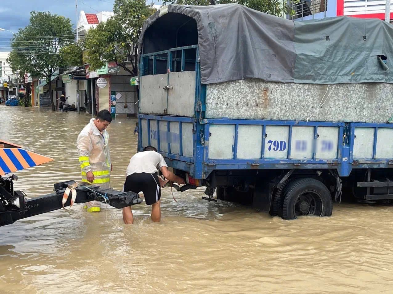 Theo đó, một số đoạn trên tuyến quốc lộ 1 qua địa bàn tỉnh Khánh Hòa đang bị ngập nặng, việc lưu thông rất khó khăn, phương tiện dễ chết máy.