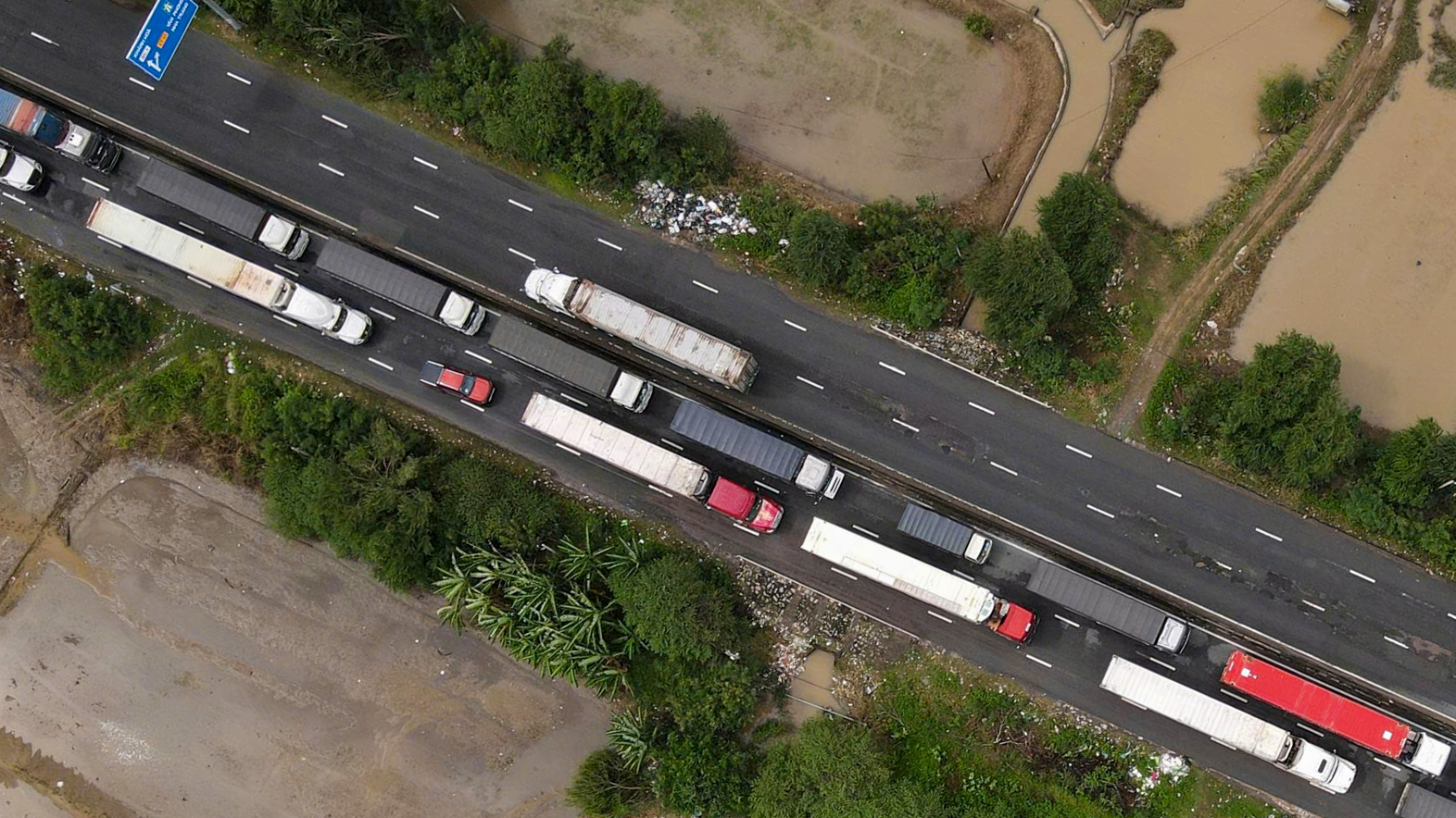 Hàng ngàn phương tiện phải dừng nối đuôi hàng chục km trên quốc lộ 1. Ảnh: HIẾU GIANG