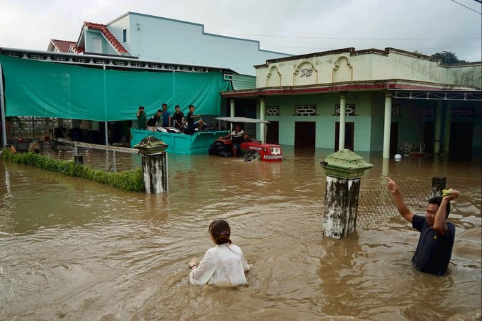 Người dân khu vực Hàm Thuận Bắc (cũ) bị lũ chia cắt. Ảnh: DT