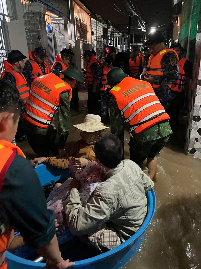 Suốt đêm 30-10, các lực lượng vũ trang, người dân huy động trang bị phương tiện để ứng cứu người dân vùng lũ.
