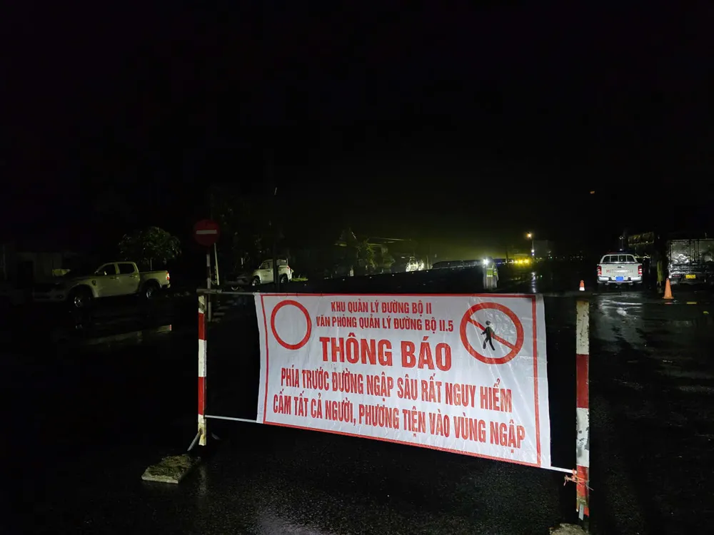 Cả hai chiều Bắc - Nam qua đây đều bị nước lũ bủa vây. Ảnh: MINH TRƯỜNG