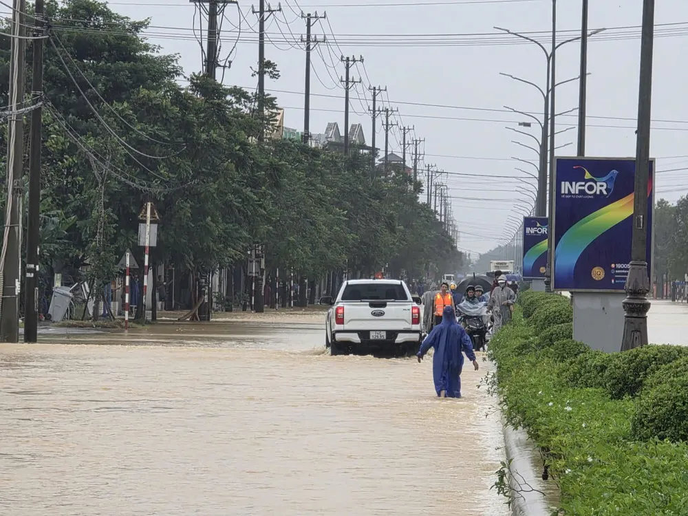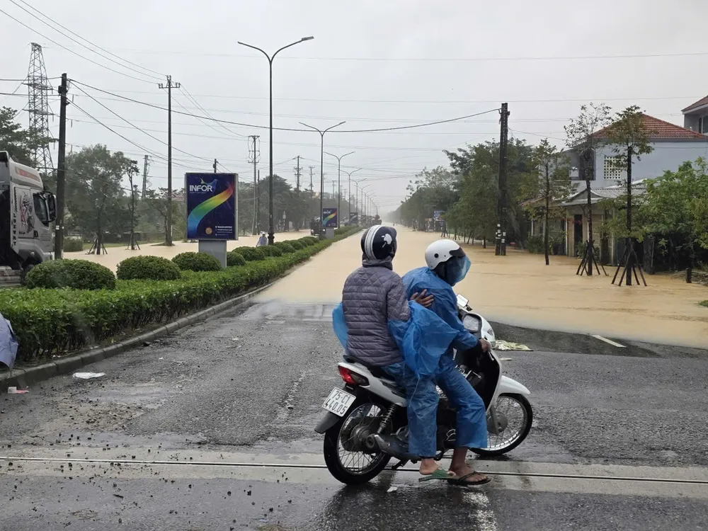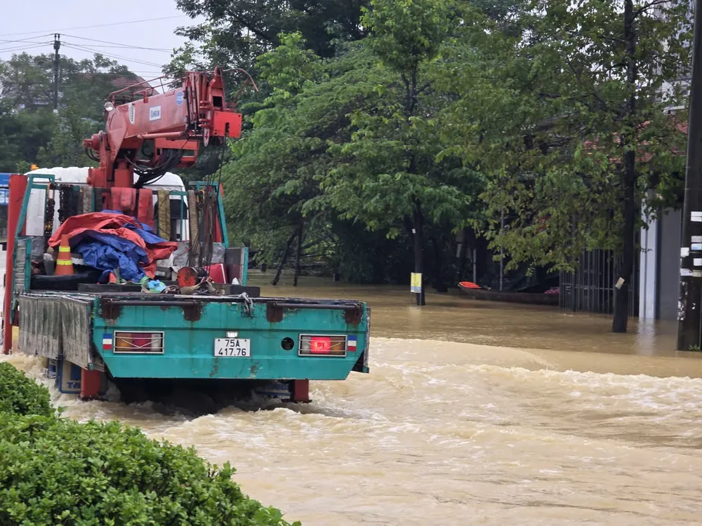 Trước đó, Quốc lộ 1A qua đoạn phường Hương Trà, TP Huế cũng bị ngập, không thể lưu thông qua lại. Hiện đoạn đường này đã được thông trở lại. Ảnh: MINH TRƯỜNG