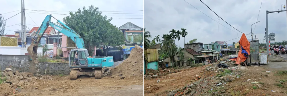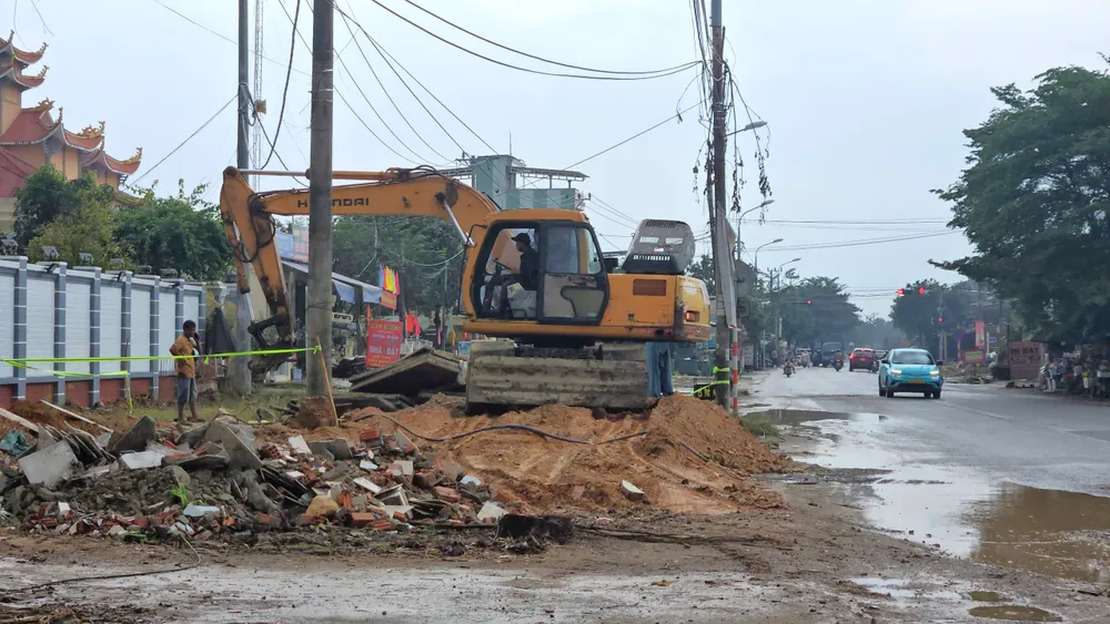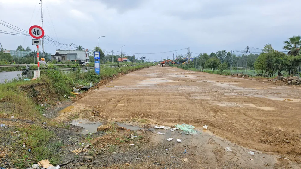 Trong lúc trời không mưa, trên nhiều đoạn tuyến đã có mặt bằng sạch vẫn không thấy bóng dáng công nhân và phương tiện thi công. Nhiều đoạn khác người dân đã bàn giao mặt bằng nhưng chưa được tổ chức thi công, tạo ra cảnh ngổn ngang, chắp vá hai bên đường.