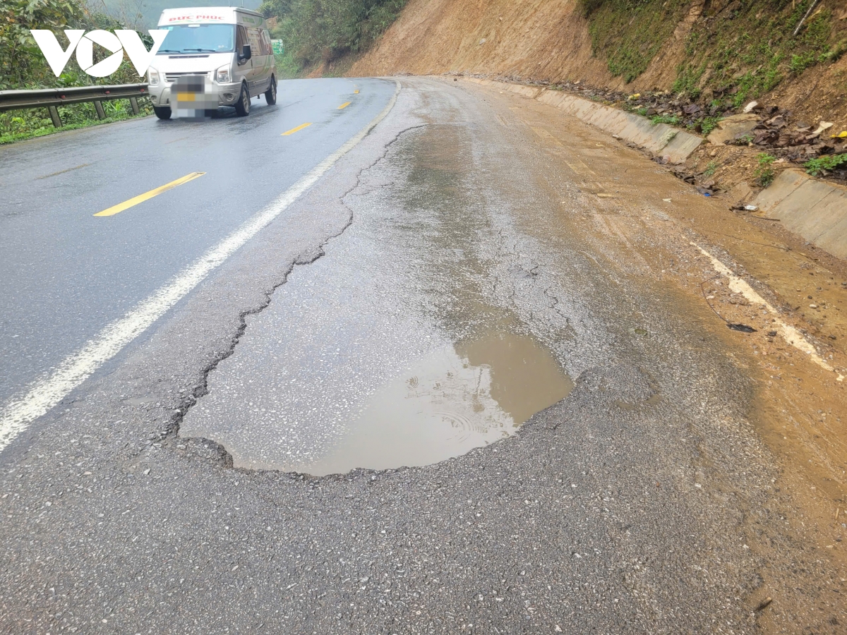 Tại nhiều vị trí, xuất hiện tình trạng bê tông nhựa bị bong tróc, tạo nên các vết ổ gà ngay trên mặt đường, đơn cử như tại vị trí Km 139+900, một mảng bê tông nhựa kéo dài hơn 10m đã bị bong tróc nhưng chưa được khắc phục. Một số vị trí khác cũng ghi nhận bị lún võng và ổ gà bong bật như Km 129+820, Km 136+270, Km 136+150… Đặc biệt, tại khu vực vị trí Km 131, một đoạn kè chừng 100m vừa hoàn thành đã bị hư hỏng nghiêm trọng sau trận mưa lũ do ảnh hưởng cơn bão số 11 (tháng 10/2025), các vết sạt lở ăn sâu vào lòng đường khiến giao thông bị ảnh hưởng và đến nay việc khắc phục vẫn chưa hoàn thành.