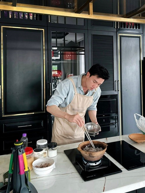 Trên trang cá nhân, Quốc Trường vừa khoe hình ảnh vào bếp ở biệt thự riêng. Anh viết: "Không hứa bên em cuối đời, nhưng sẽ hứa nấu cho em ăn những món ngon tuyệt vời". Ảnh: FB Quốc Trường.