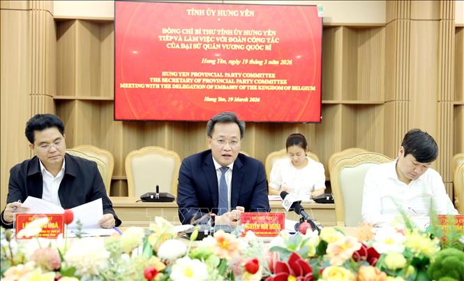 Chào mừng Đại sứ Karl Van Den Bossche và Đoàn công tác thăm làm việc tại Hưng Yên, Ủy viên Trung ương Đảng, Bí thư Tỉnh ủy Hưng Yên Nguyễn Hữu Nghĩa trân trọng cảm ơn những tình cảm, hoạt động có ý nghĩa của Nhà vua, Hoàng hậu, Chính phủ và nhân dân Vương quốc Bỉ trong công tác hỗ trợ khắc phục hậu quả chiến tranh tại Việt Nam thời gian qua.