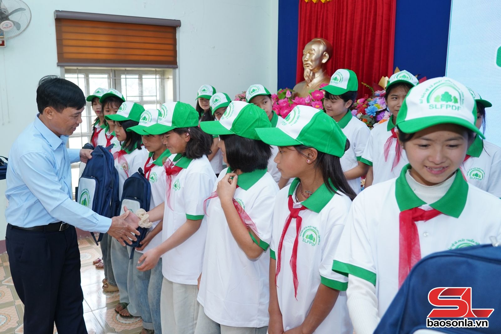 Đại diện Quỹ Bảo vệ và phát triển rừng đã gửi lời động viên các em học sinh, cố gắng khắc phục khó khăn, vươn lên trong học tập và góp sức xây dựng quê hương ngày càng phát triển.