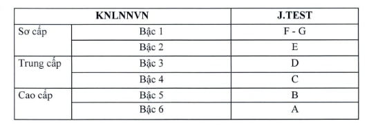 Theo đó, Bộ Giáo dục - Đào tạo cũng vừa có Quyết định Số: 40/QĐ-BGDĐT ngày 12/1/2026 công nhận các cấp độ của chứng chỉ tiếng Nhật TEST OF PRACTICAL JAPANESE (J.TEST) tương đương với các bậc của Khung năng lực ngoại ngữ 6 bậc dùng cho Việt Nam (KNLNNVN) để sử dụng trong tuyển sinh, đào tạo các trình độ của giáo dục đại học. Mức độ cụ thể như sau:
