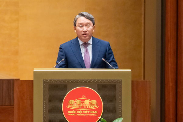 Bộ trưởng Bộ Tư pháp Nguyễn Hải Ninh trình bày báo cáo tiếp thu, giải trình dự án Luật Giám định tư pháp (sửa đổi).