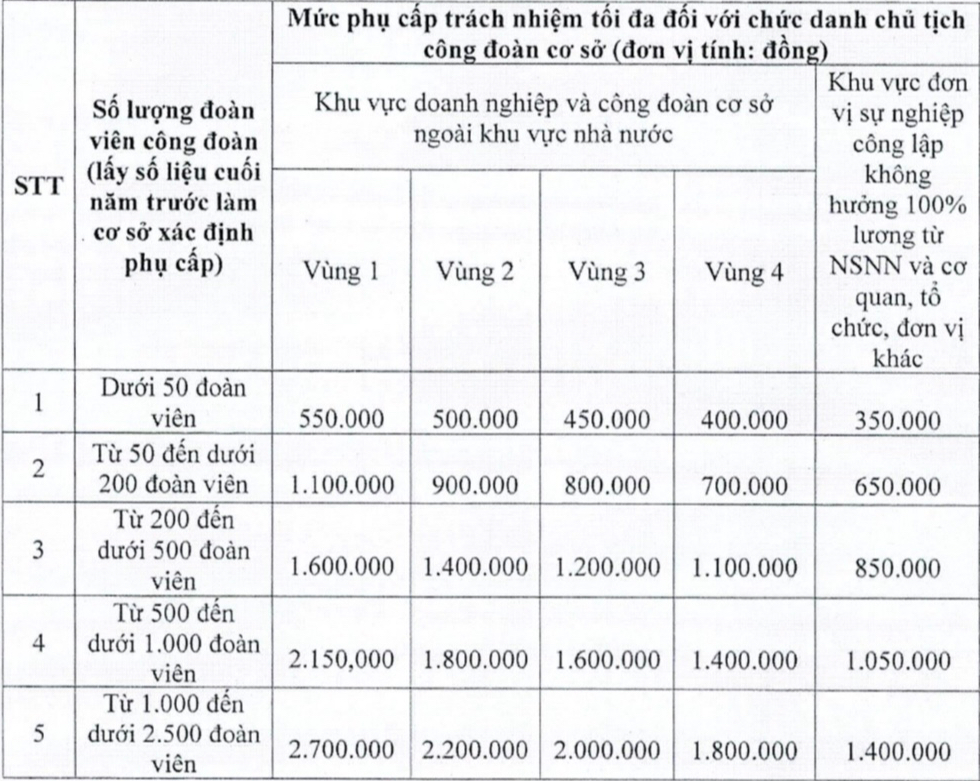 Số lao động càng lớn, mức phụ cấp dành cho cán bộ công đoàn càng cao, phản ánh đúng khối lượng công việc và trách nhiệm thực tế.