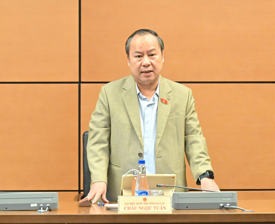 Trưởng đoàn ĐBQH tỉnh Gia Lai Châu Ngọc Tuấn đề nghị quy định rõ nguyên tắc quy hoạch sau sáp nhập để tránh chồng lấn và gián đoạn quản lý. Ảnh: Đoàn ĐBQH tỉnh
