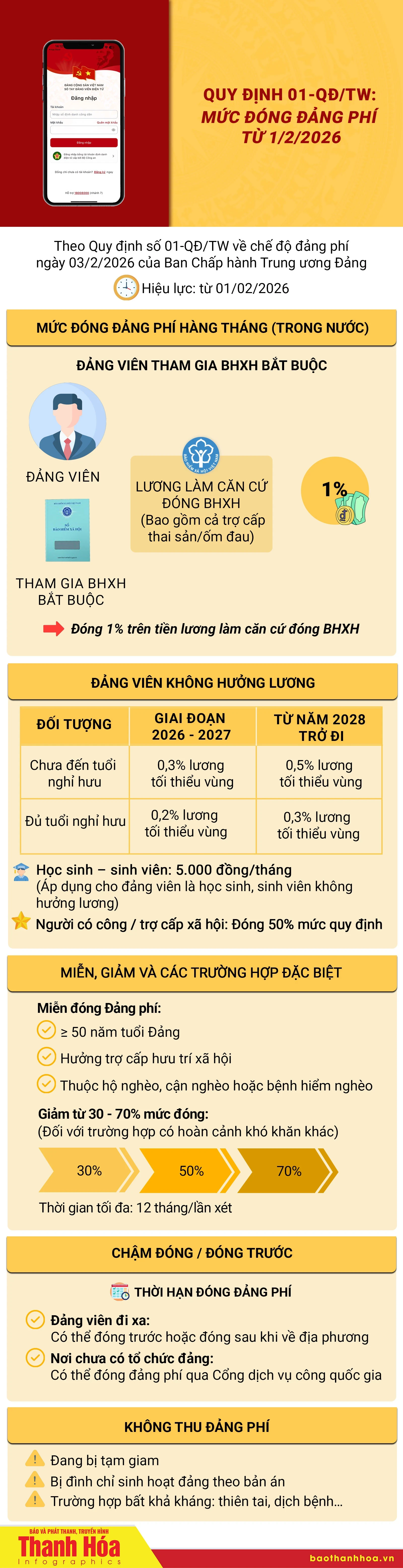 Quy định số 01-QĐ/TW : MỨC ĐÓNG ĐẢNG PHÍ TỪ 01/2/2026
