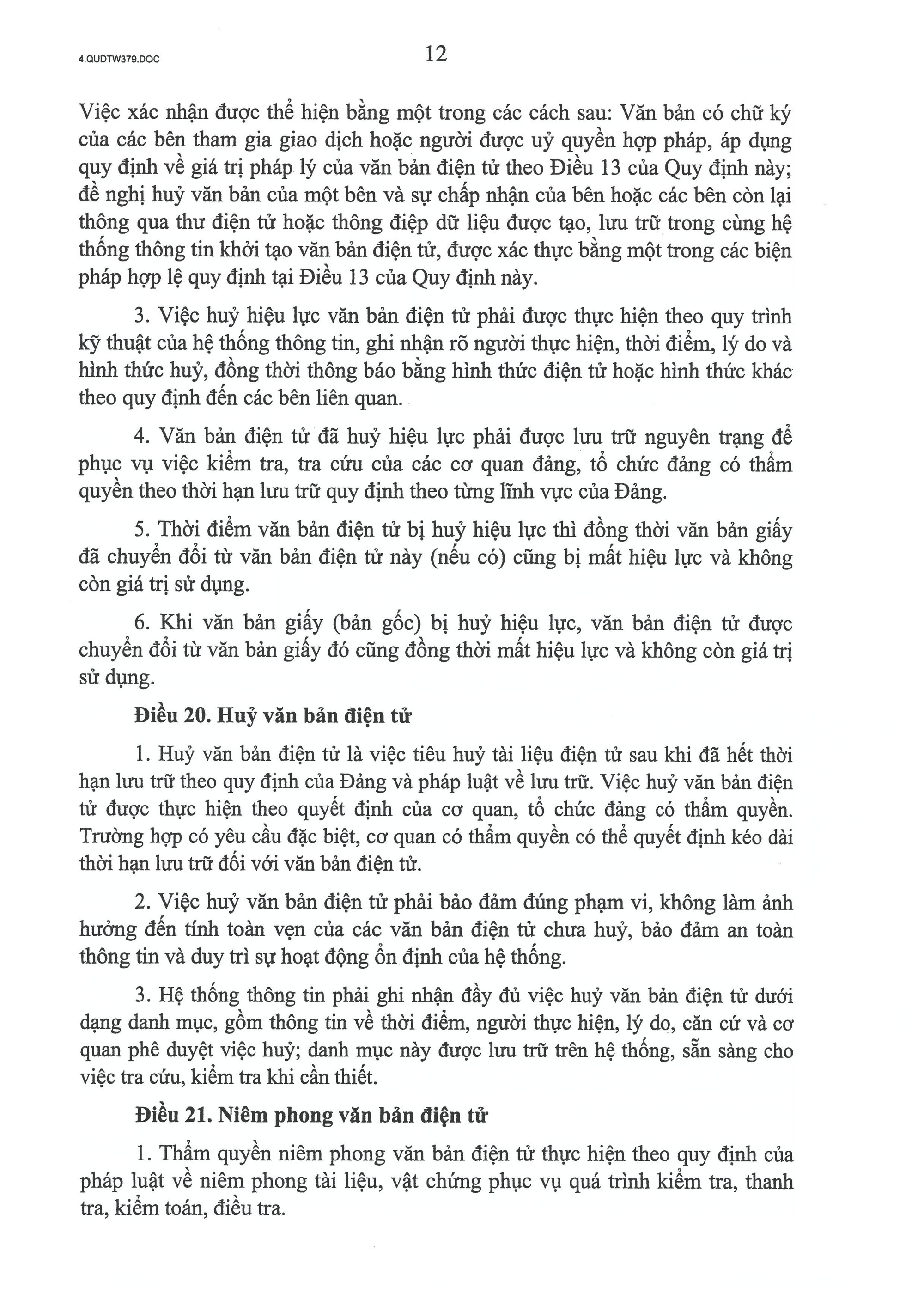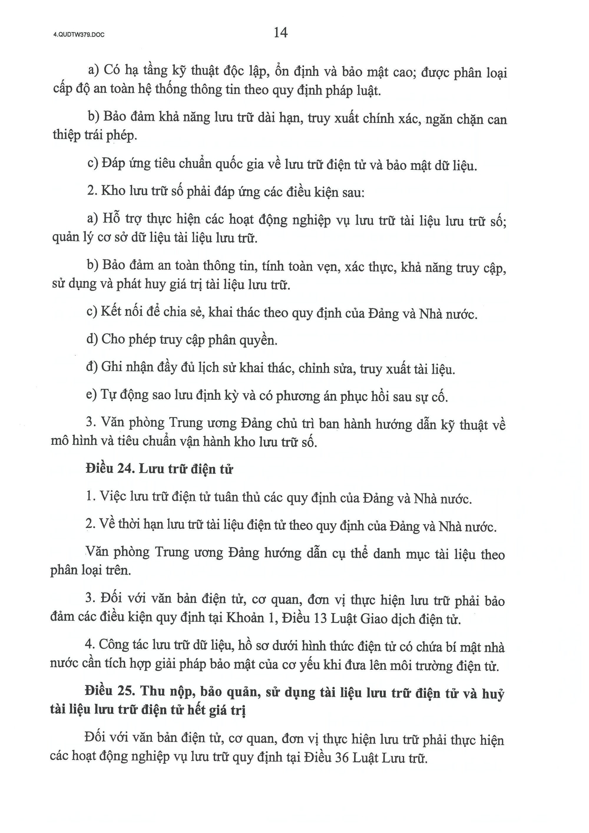 Quy định này không áp dụng đối với thông tin, dữ liệu, văn bản, hồ sơ thuộc danh mục tuyệt mật hoặc các thông tin, dữ liệu, văn bản, hồ sơ được quy định riêng của Đảng.
