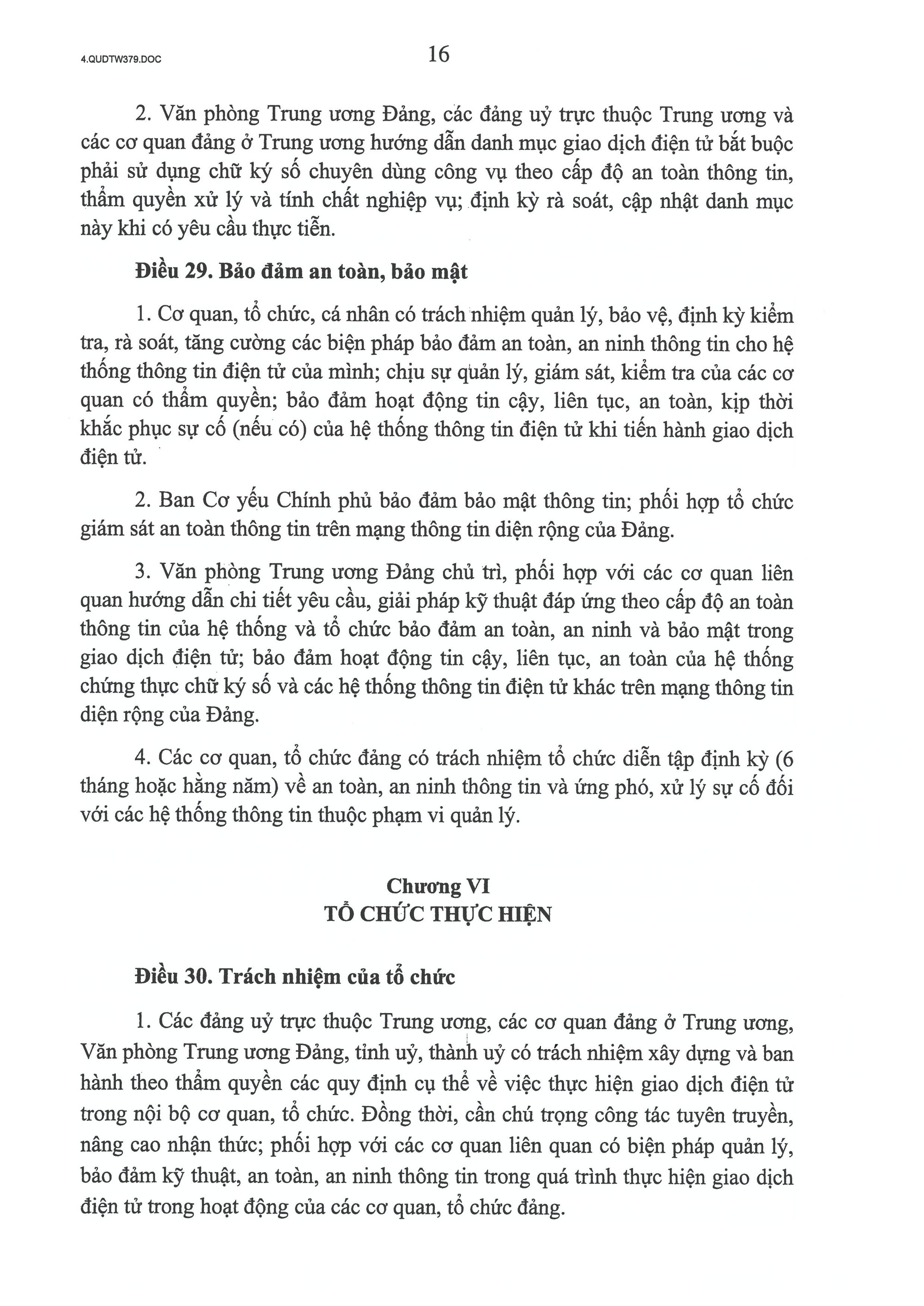 TOÀN VĂN: Quy định số 379-QĐ/TW về thực hiện giao dịch điện tử trong hoạt động của các cơ quan, tổ chức đảng
