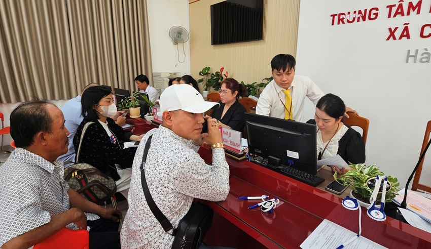 Người dân đến giao dịch tại Trung tâm Phục vụ hành chính công xã Chân Mây - Lăng Cô