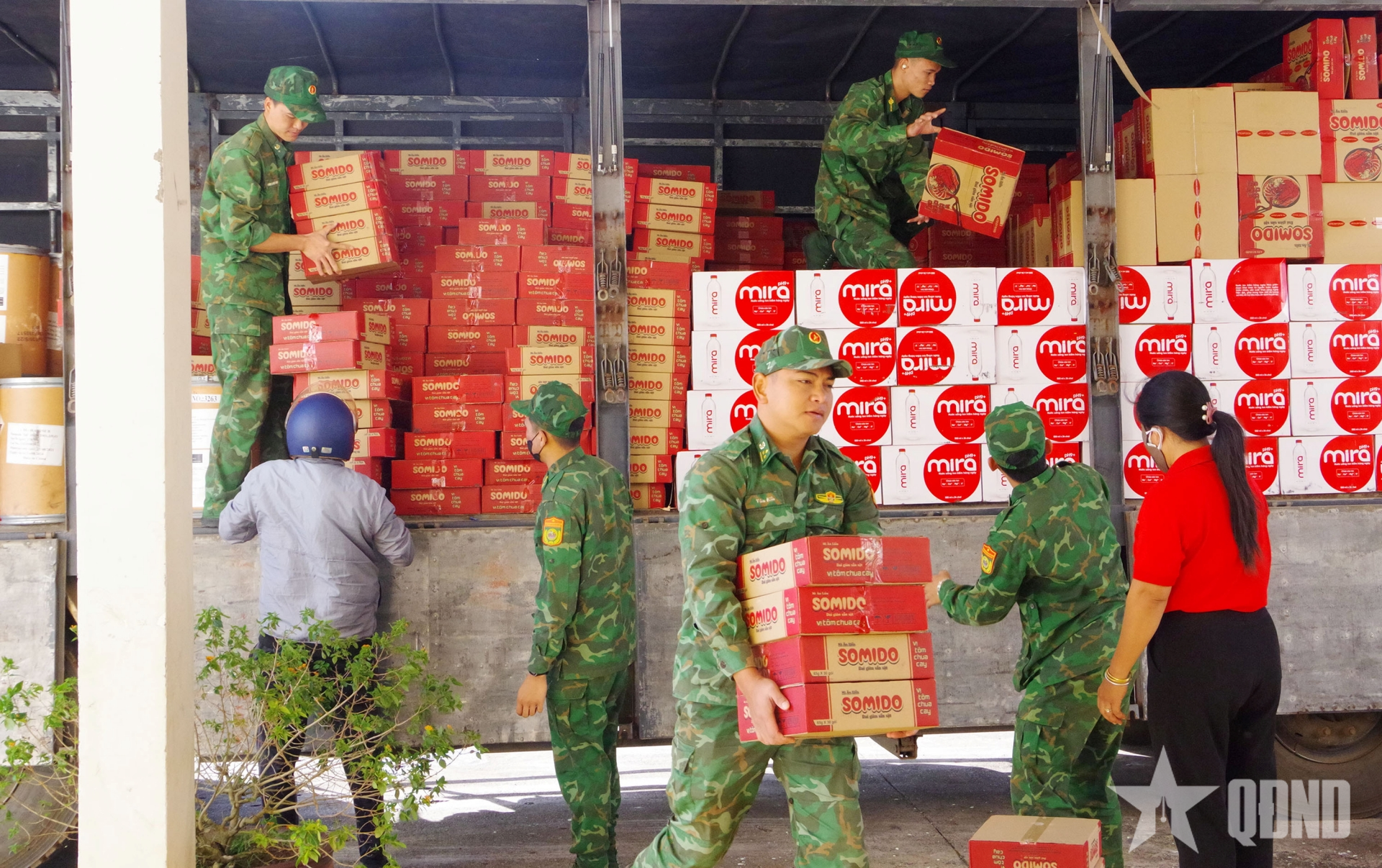 Bộ đội Biên phòng tỉnh Lâm Đồng tham gia vận chuyển thực phẩm hỗ trợ nhân dân vùng lũ. Ảnh: qdnd.vn